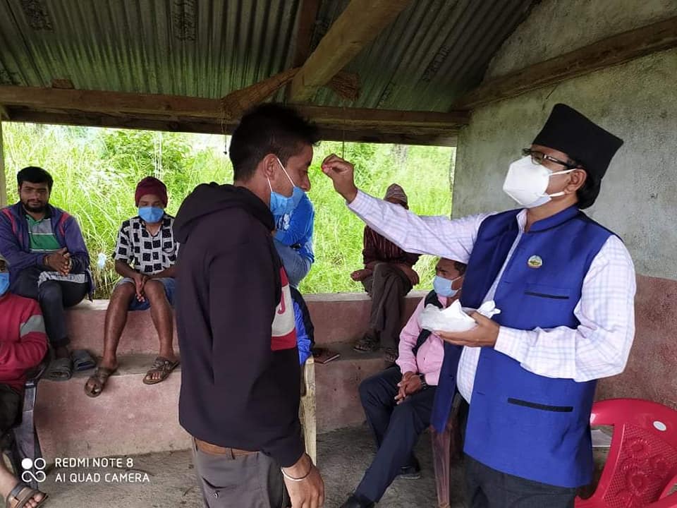 नेपाल कम्युनिस्ट पार्टी नेकपाका नेता रामजी प्रसाद घिमिरेले एक समारोहका बीच सामाजिक दुरि कायम गरि भेष बहादुर जि.सी. चुमानसिंह बुढाथोकी ,कमल के.सी., बिक्रम भाट, सुरत के.सी., रामलाल पुरी, दिनेश ताम्राकार , कमल पाण्डे , सीता बुढाथोकी ,रामबहादुर अधिकारी , गोपाल थापा, दिपक थापा, रुपा पौडेल लगायतलाई पार्टी प्रवेश गराउनु भएको थियो । नव प्रवेशि हरुले बिकास र समृद्धिको निम्ति नेकपाको बिकल्प नभएको बताए ।