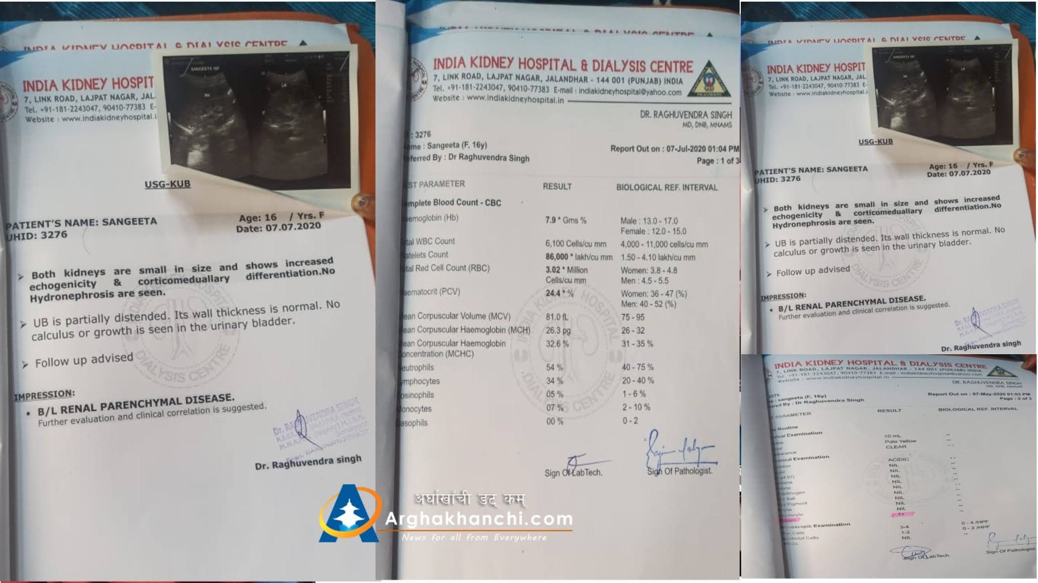 अर्घाखाँचीकी दुवै मिर्गौला पीडित १६ वर्षिया किशोरीले पैसा नहुँदा उपचार पाईनन्, भारतमा अलपत्र