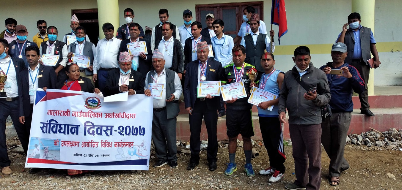 खनदह, अर्घाखाँची । अर्घाखाँची जिल्लाको मालारानी गाउँपालिकाले संविधान दिवस २०७७ को अवसरमा विभिन्न अन्तर कर्मचारी खेलकुद कार्यक्रम गरि सम्पन्न गरेको छ ।