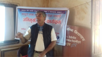 डिहिडाँडा, अर्घाखाँची । विकलांग मित्र समुह अपाङ्ग बाल अस्पताल तथा पुनस्र्थापन बनेपाद्वारा सन्चालित सक्षम परियोजना अर्घाखाँची शाखाको आयोजनामा अपाङ्गता भएका बालबालिकाको शिक्षा सम्बन्धि अभिमुखीकरण कार्यक्रम सन्धिखर्क नगरपालिका वार्ड नं . ७ खाँचीकोटको चन्द्रप्रभा माध्यमिक बिधालय डिहिडाँडामा सम्पन्न भएको छ।