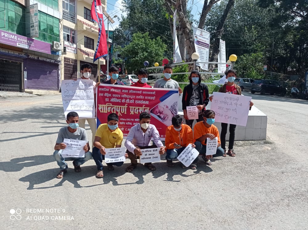 हामी स्वतन्त्र युबाहरुको आयोजनामा सन्धिखर्कको शन्ती बगैचामा चिकित्सा शिक्षा सुधारका अभियान्ता डा. गोविन्द केसीको समर्थन प्रदर्शन भएको हो ।