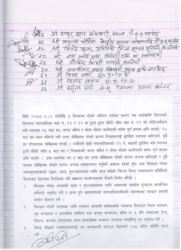 अर्घाखाँचीमा बिपद ब्यबस्थापन समितीको बैठक सम्पन्न, पहिरो पीडितहरुलाई आस्थायी बसोबासको व्यवस्था मिलाइने