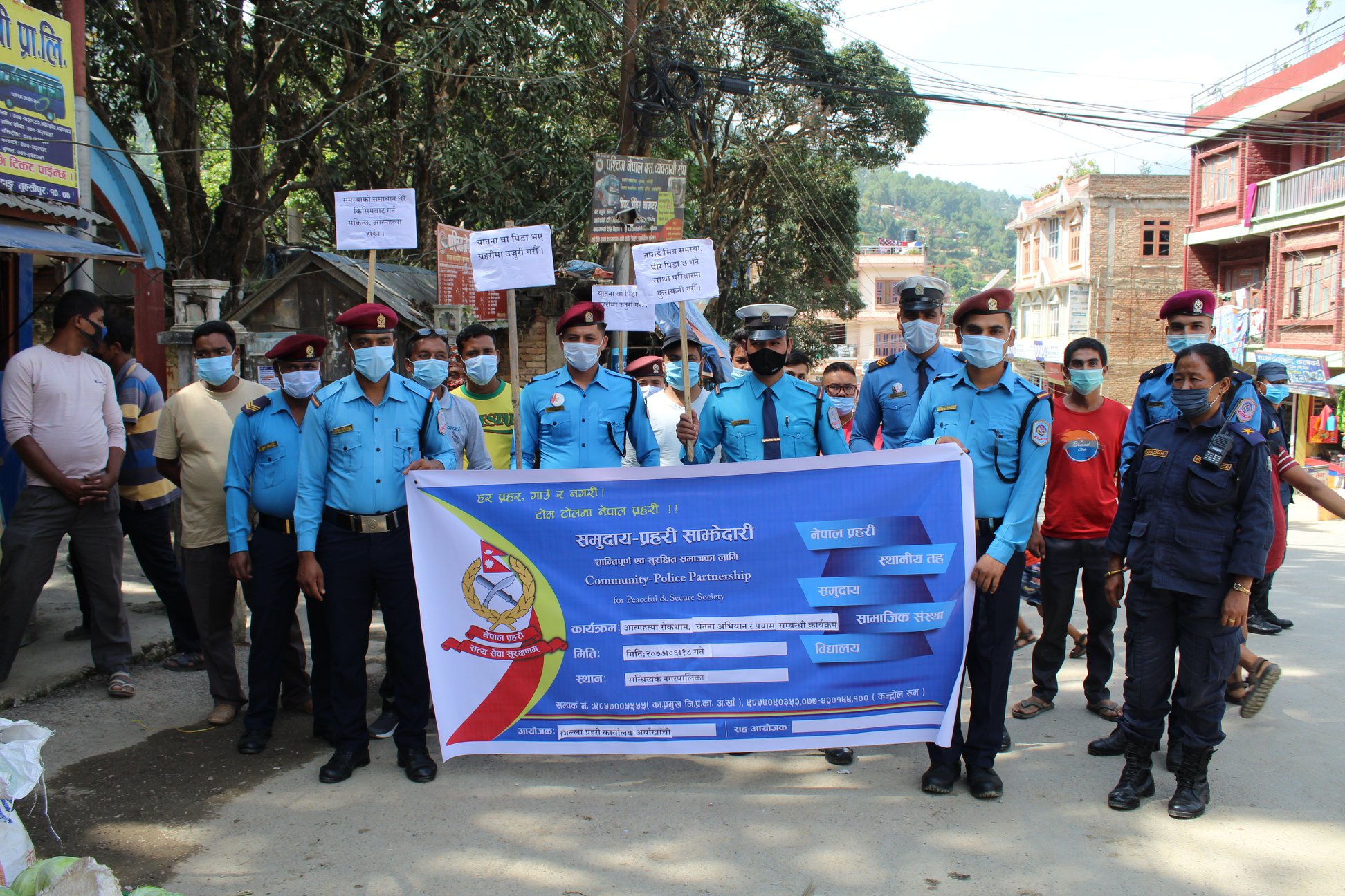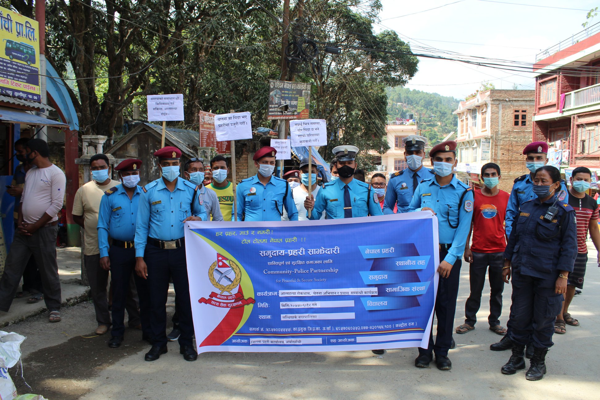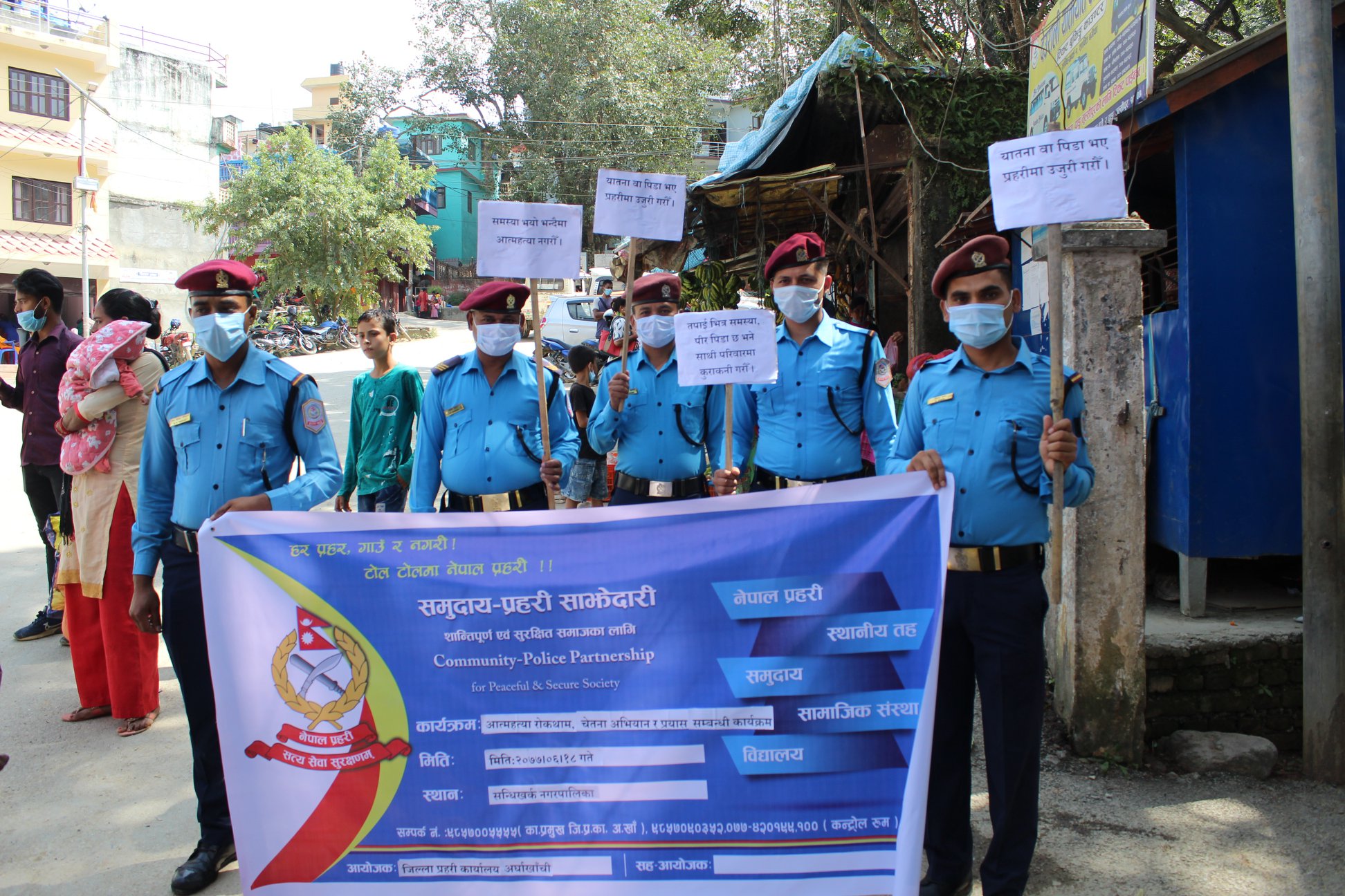 जिल्ला प्रहरी कार्यालय अर्घाखाँचीको आयोजनामा “समुदाय-प्रहरी साझेदारी कार्यक्रम”अनुसार “आत्महत्या रोकथाम, चेतना अभियान र प्रयास” १५ दिने अभियान अन्तर्गत जिल्ला अर्घाखाँची सन्धिखर्क नगरपालिका वार्ड नं. १ सन्धिखर्क र २ चुत्राबेसीमा प्र.स.नि. ईश्वरी खनालको कमाण्डमा खटिएको प्रहरी टोलीले जनचेतना मुलक प्लेकार्ड सहित बजार परिक्रमा गरी सर्वसाधारणलाई आत्महत्या रोकथाम तथा नियन्त्रण सम्बन्धी प्रशिक्षण दिईएको हो ।