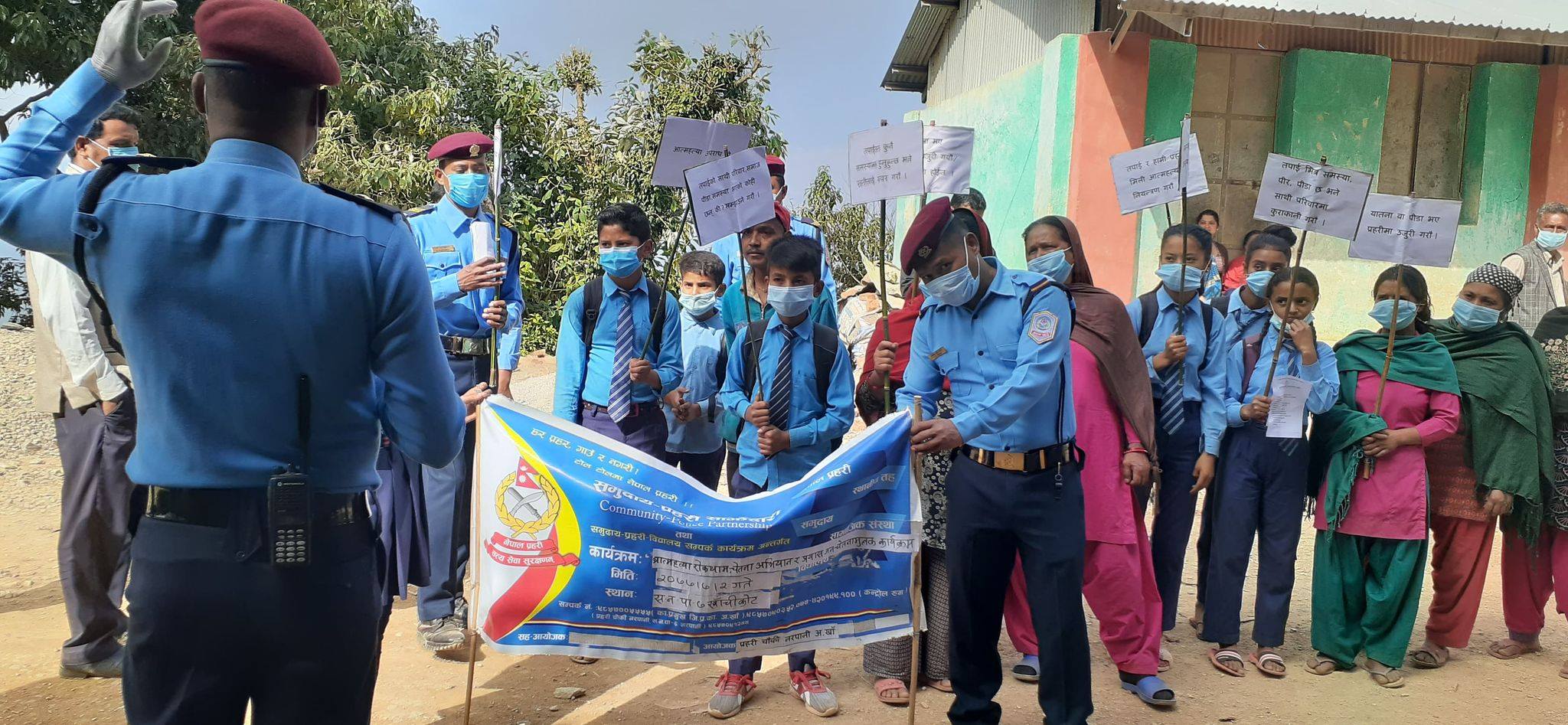 प्रहरी चौकी नरपानी प्र.स.नि. राम नारायण चौधरीको कमाण्डमा खटिएको प्रहरी टोली र स्थानियबासि, भद्र भलादमी, बुद्दिजिवी, व्यापारी, शिक्षक, बिद्यार्थी, महिला, समाजसेवी, राजनिति दल र संघ संस्थाका सदस्यको सहभागीतामा र्‍याली, पर्चा पम्पेलेट, ब्यानर र प्लेकार्ड सहित बजार परिक्रमा गरि कार्यक्रम सम्पन्न गरिएको थियो ।