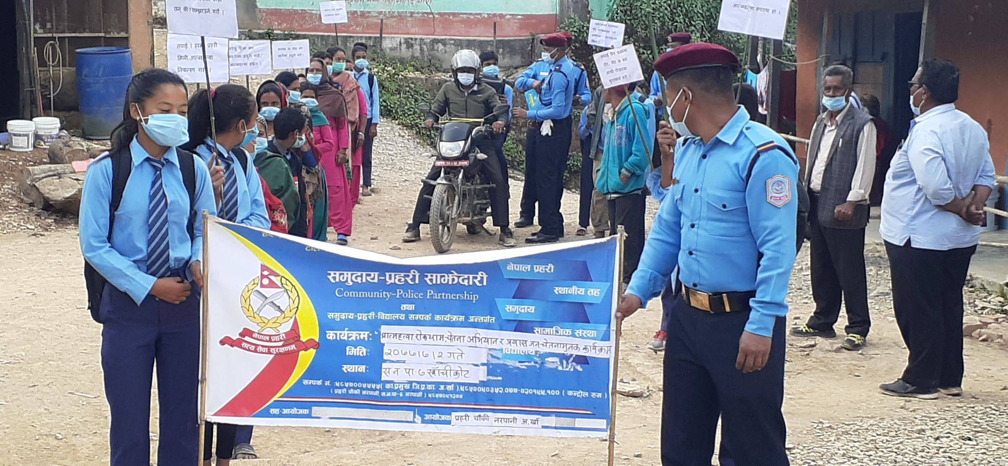 खाँचीकोटको मैदानमा प्रहरी चौकी नरपानी अर्घाखाँचीको आयोजनामा “समुदाय-प्रहरी साझेदारी कार्यक्रम”अनुसार आत्महत्या रोकथाम सम्बन्धी र्‍याली कार्यक्रम सम्पन्न भएको हो ।