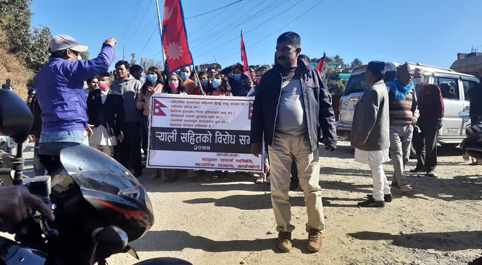 ठाडा, अर्घाखाँची (अर्घाखाँचीडट्कम) । अर्घाखाँची जिल्लाको शितगंगामा हिन्दु राष्ट्र र राजतन्त्र पुर्नस्थापनको माग गर्दै र्याली निकालिएको छ । नागरिक समाजको अगुवाइमा र्याली निकालिएको हो ।