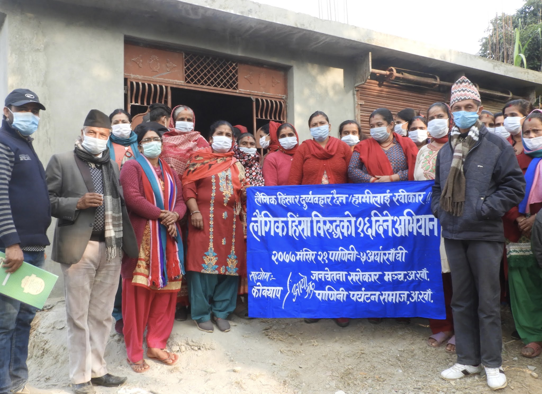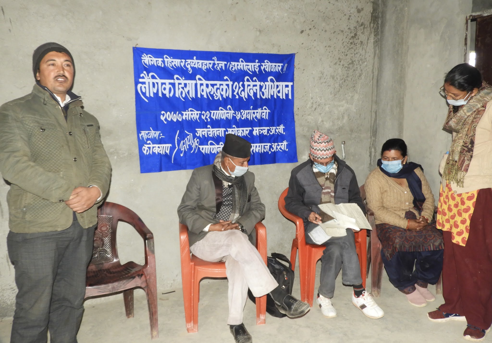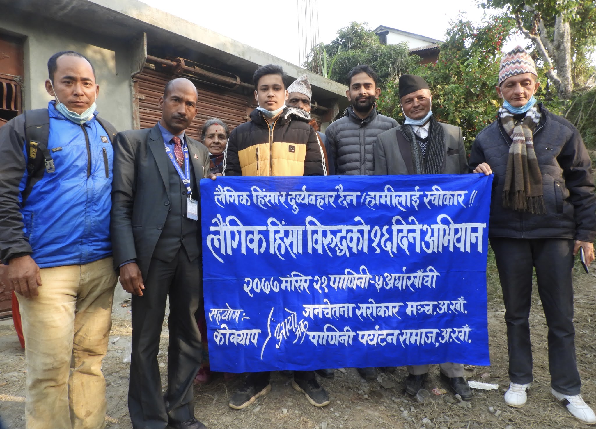 मैदान, अर्घाखाँची  (अर्घाखाँचीडट्कम व्युरो रिपोर्ट) । अर्घाखाँची जिल्लाको  पाणिनी गाँउपालिका वार्ड नं ५ मैदानमा लैंगिक हिंसा विरुद्धको १६ दिने अभियान सम्बन्धि एक दिने कार्यक्रम सम्पन्न भएको छ ।