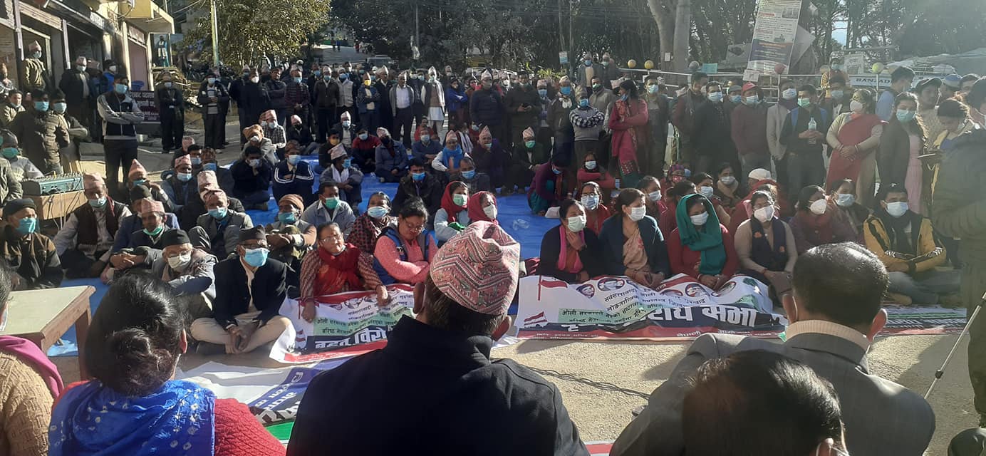 बिरोध सभा अघि विपि स्मृति भवनबाट शुरु भएको बिरोध प्रदर्शन सन्धिखर्क र चुत्राबेसीका बिभिन्न भाग परिक्रमा गदैै शान्ती बगैचामा गएर बिरोध सभामा परिणत भएको थियो ।