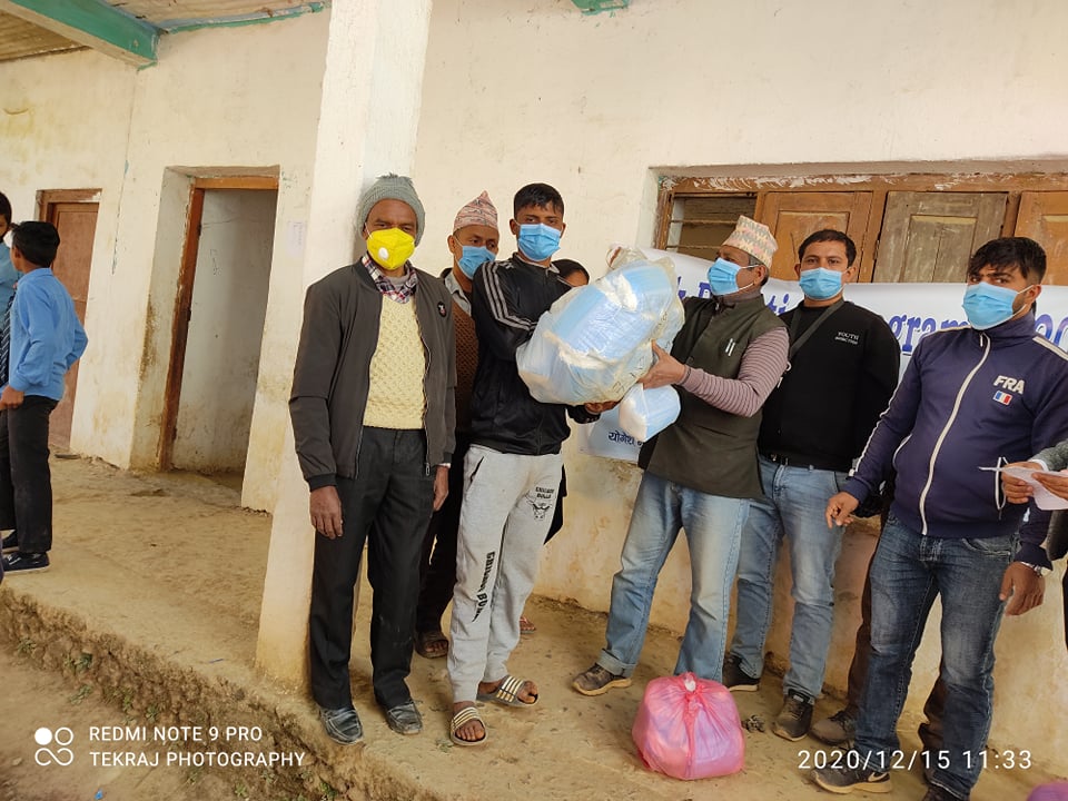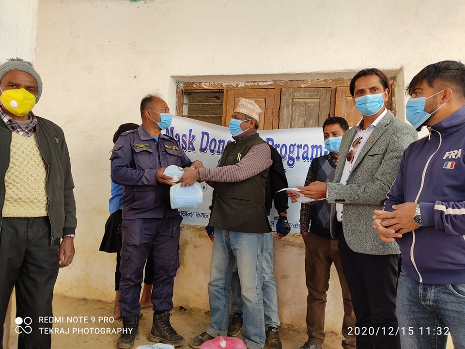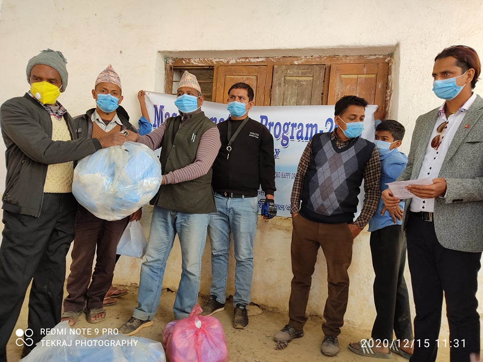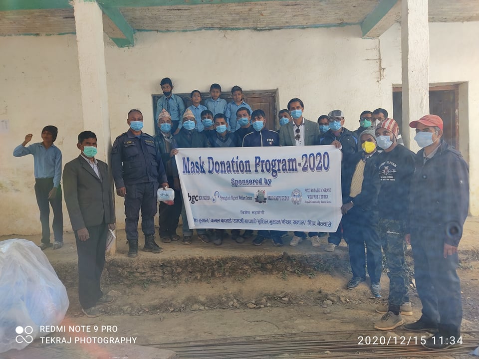 फ्यङ्गथेक माईग्रेन्ट वेलफेर सेन्टर नेपाली समिति दक्षिण काेरिया र भुमिकास्थान नगरपालिका वार्ड नम्बर १ र २ ढाकावाङ्गका ६ जना काेरियामा बस्ने युवाहरु याेगेश भुसाल, कमल बन्जाडे, रामजी बन्जाडे, सुशील भुसाल, केशव खनाल र शिव बेल्वासेकाे आर्थिक सहयाेगमा पन्ध्र नि:शुल्क माक्स वितरण गरिको हो ।