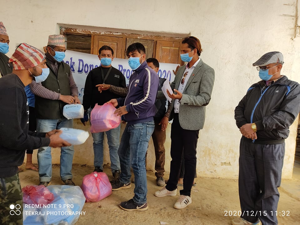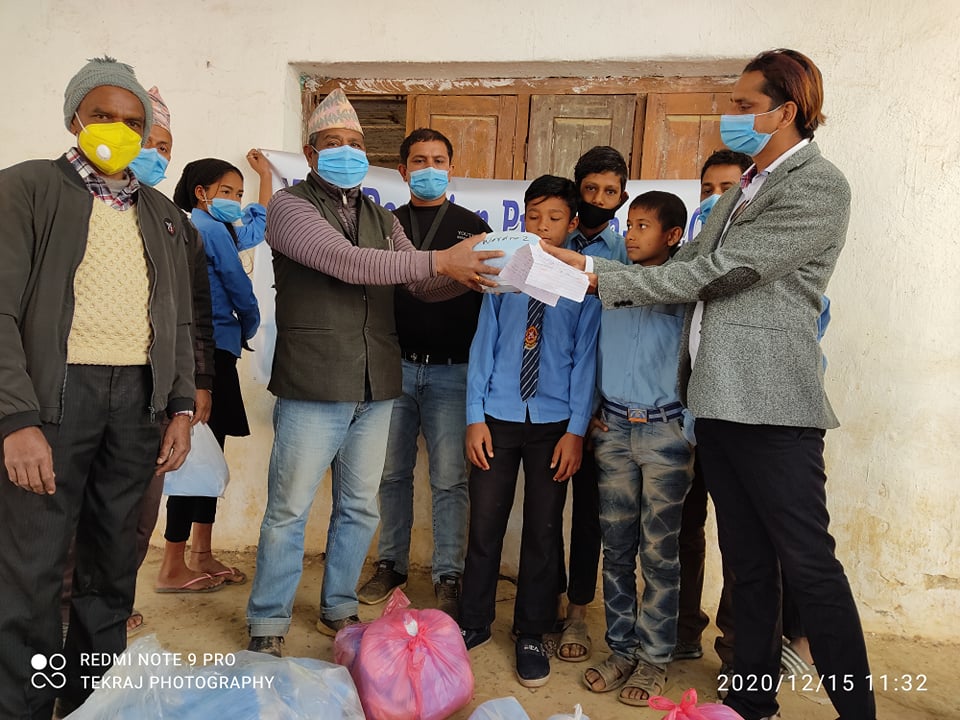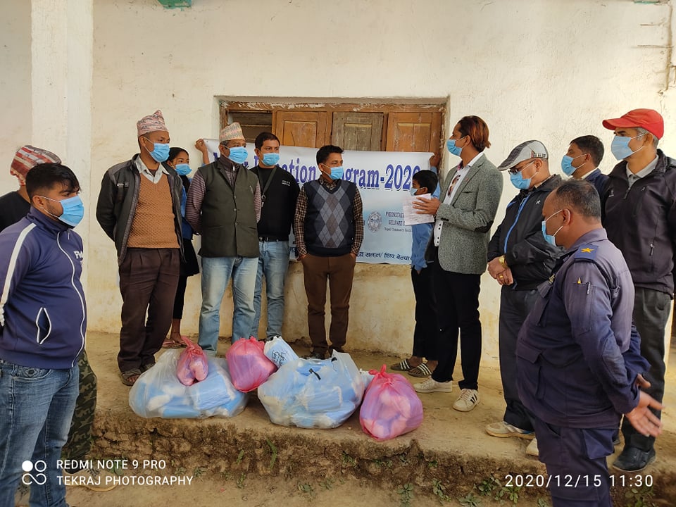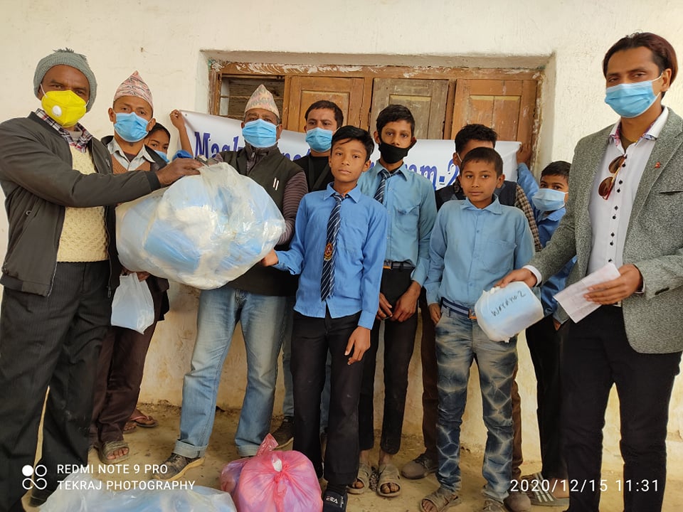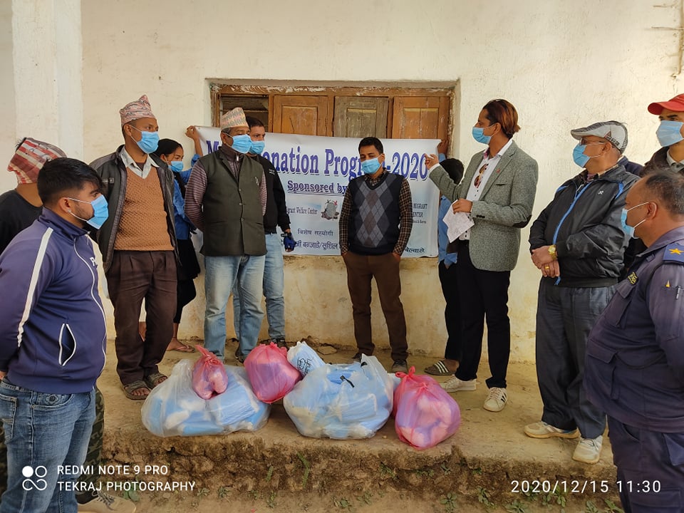 फ्यङ्गथेक माईग्रेन्ट वेलफेर सेन्टर नेपाली समिति दक्षिण काेरिया र भुमिकास्थान नगरपालिका वार्ड नम्बर १ र २ ढाकावाङ्गका ६ जना काेरियामा बस्ने युवाहरु याेगेश भुसाल, कमल बन्जाडे, रामजी बन्जाडे, सुशील भुसाल, केशव खनाल र शिव बेल्वासेकाे आर्थिक सहयाेगमा पन्ध्र नि:शुल्क माक्स वितरण गरिको हो ।