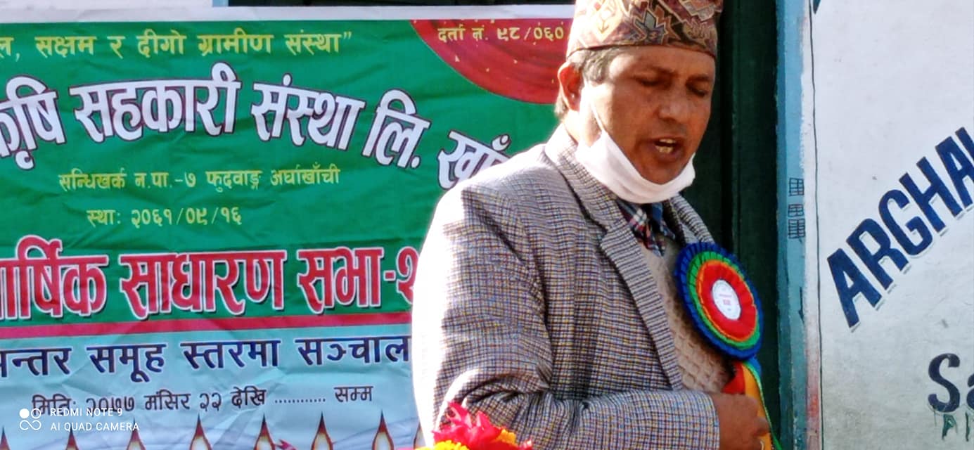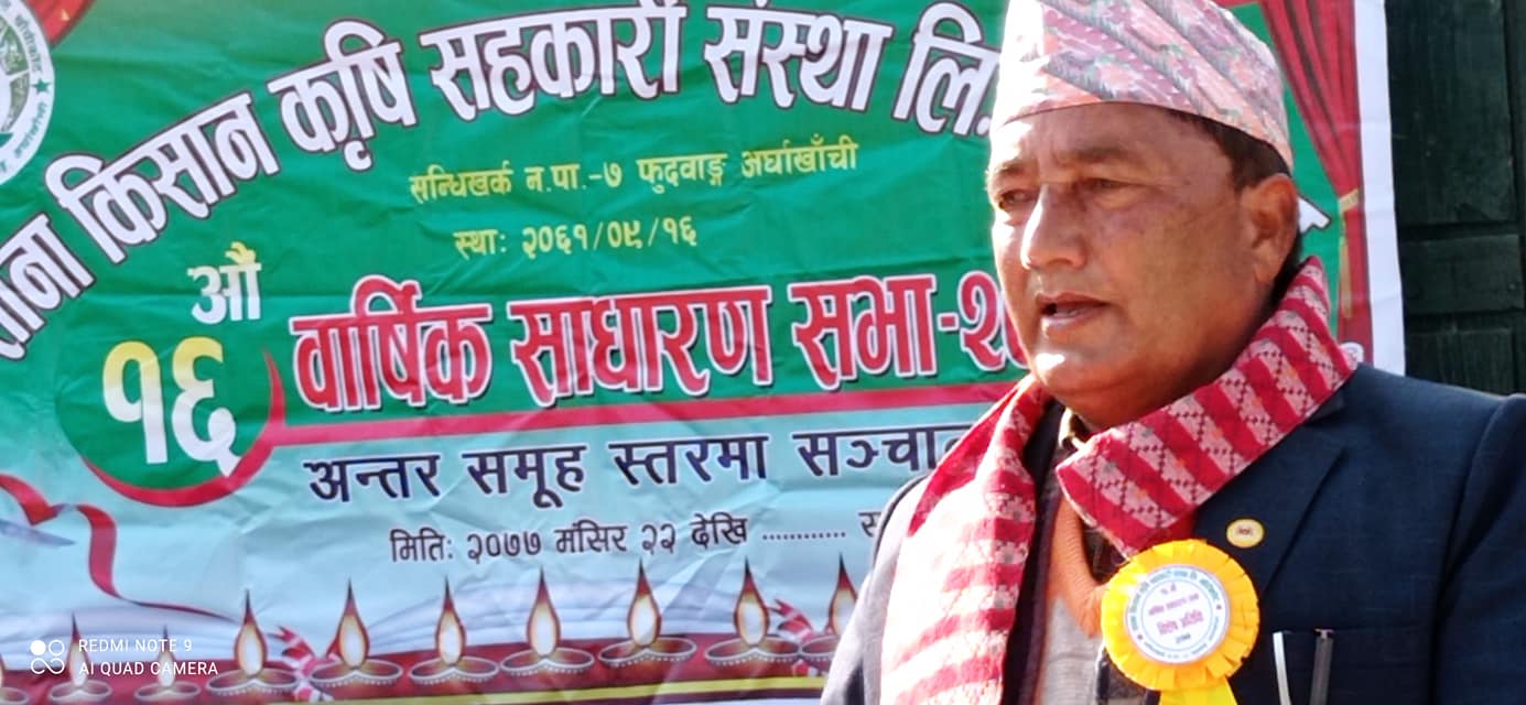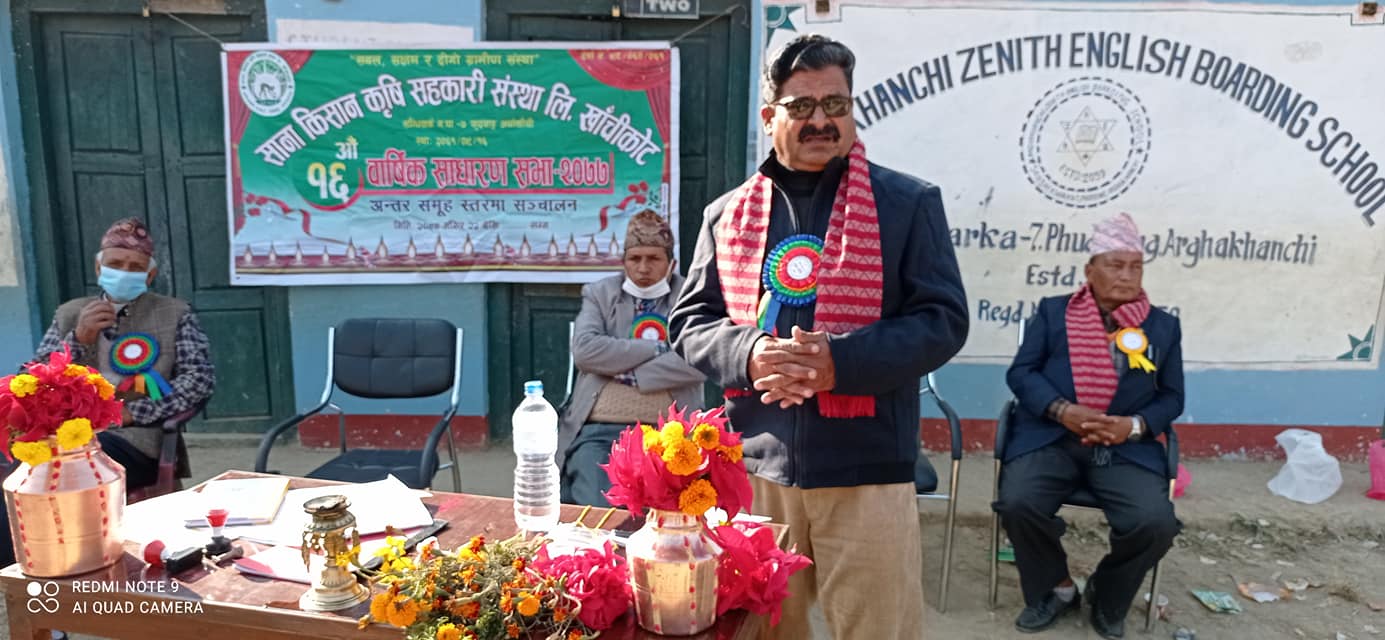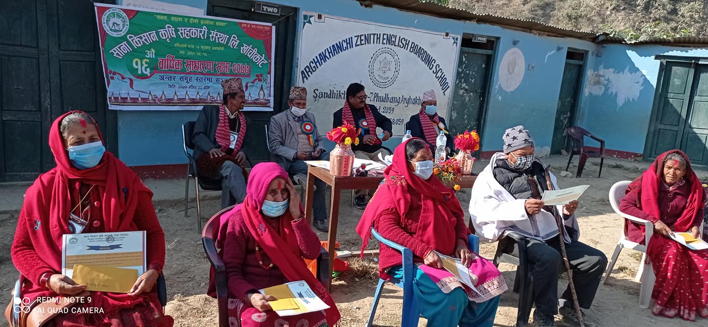 खाँचीकोट, अर्घाखाँची पौष ११ (अर्घाखाँचीडट्कम) । अर्घाखाँची जिल्लाको सन्धिखर्क नगरपालिका वार्ड नम्बर ७ खाँचीकोटको फुदवाङमा साना किसान कृषि सहकारी संस्था लि. को वार्षिक साधारण सभा सम्पन्न भएको छ ।