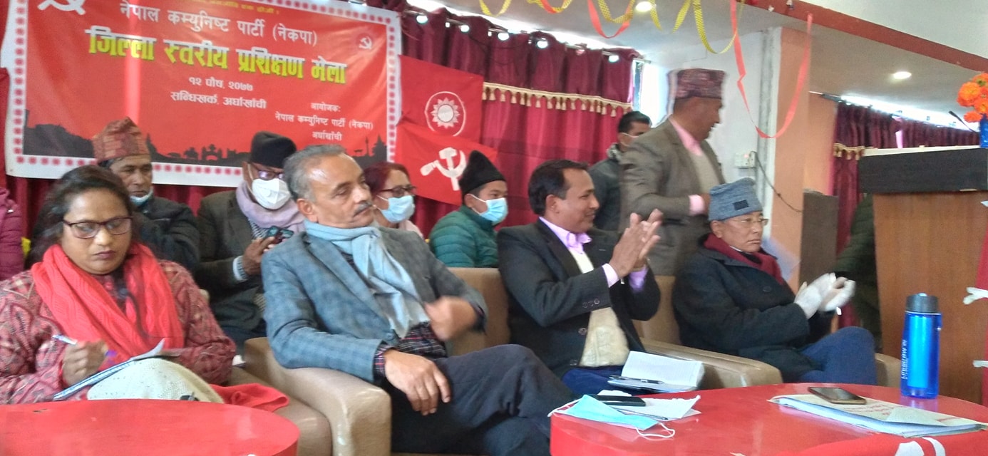 सन्धिखर्कमा नेकपाको प्रचण्ड–नेपाल खेमाको नेकपाले विभाजनपछि पहिलो पटक जिल्ला स्तरीय प्रशिक्षण भेला सम्पन्न गरेको हो । उता जिल्लाभरबाट सन्धिखर्क आउन लागेका स्थानिय नेता कार्यकर्तालाई ओली पक्षले गाउँ गाउँमा अवरुद्द गरेका थिए । तरपनि भेलामा १५० जना बढीको उपस्थिती रहेको थियो ।