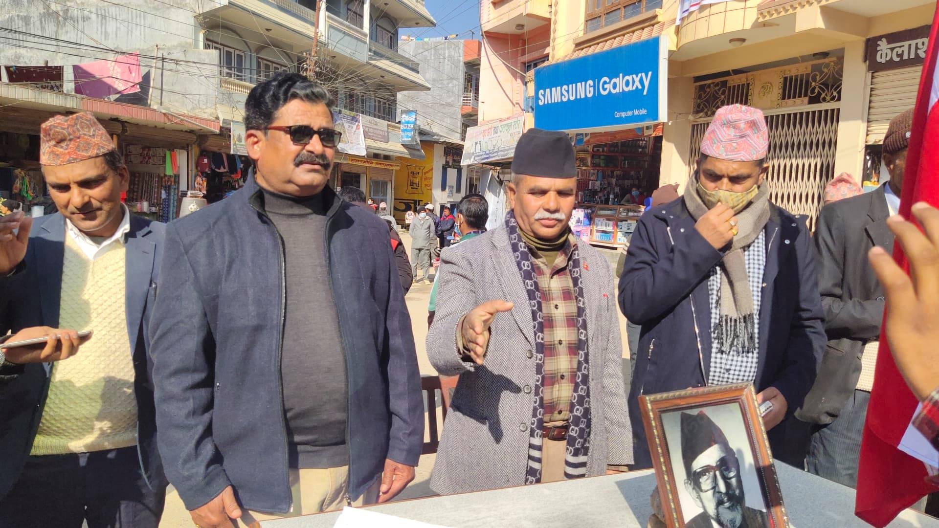 बि. पि. स्मृति भवनबाट निकालिएको बिरोध जुलुश बजार परिक्रमा गरि शान्ति बगैंचा चोकमा पुगेर शभामा परिणत भएको थियो । शभामा बोल्दै नेपाली काङ्ग्रेस अर्घाखाँचीका सभापति बिष्णु मुस्कानले खड्ग प्रसाद वलि कम्युनिस्टका नाममा कलकं भएको बताए । उनले लोकतन्त्रको मियो काङ्ग्रेसमात्र भएको दावी गर्दै नेपालमा कम्युनिस्टहरुले धेरै गद्दारि गरेको उल्लेख गरे ।