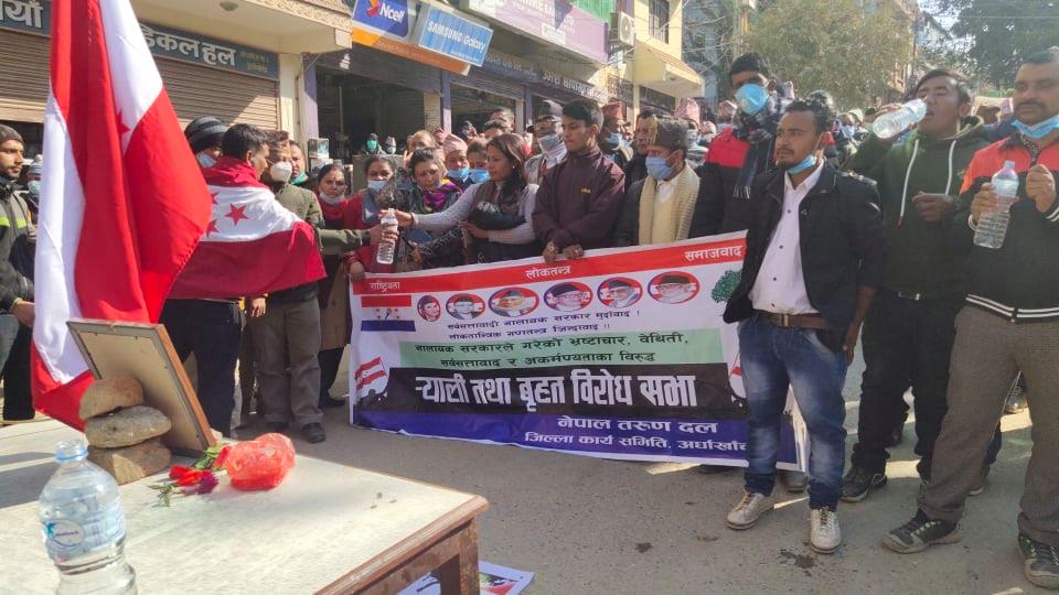 सन्धिखर्कमा कांग्रेसको बृहत् बिरोधसभा सम्पन्न | ओली कम्युनिस्टका नाममा कलंक, लोकतन्त्रको मुकुन्डो लगाएको तानाशाह: मुस्कान