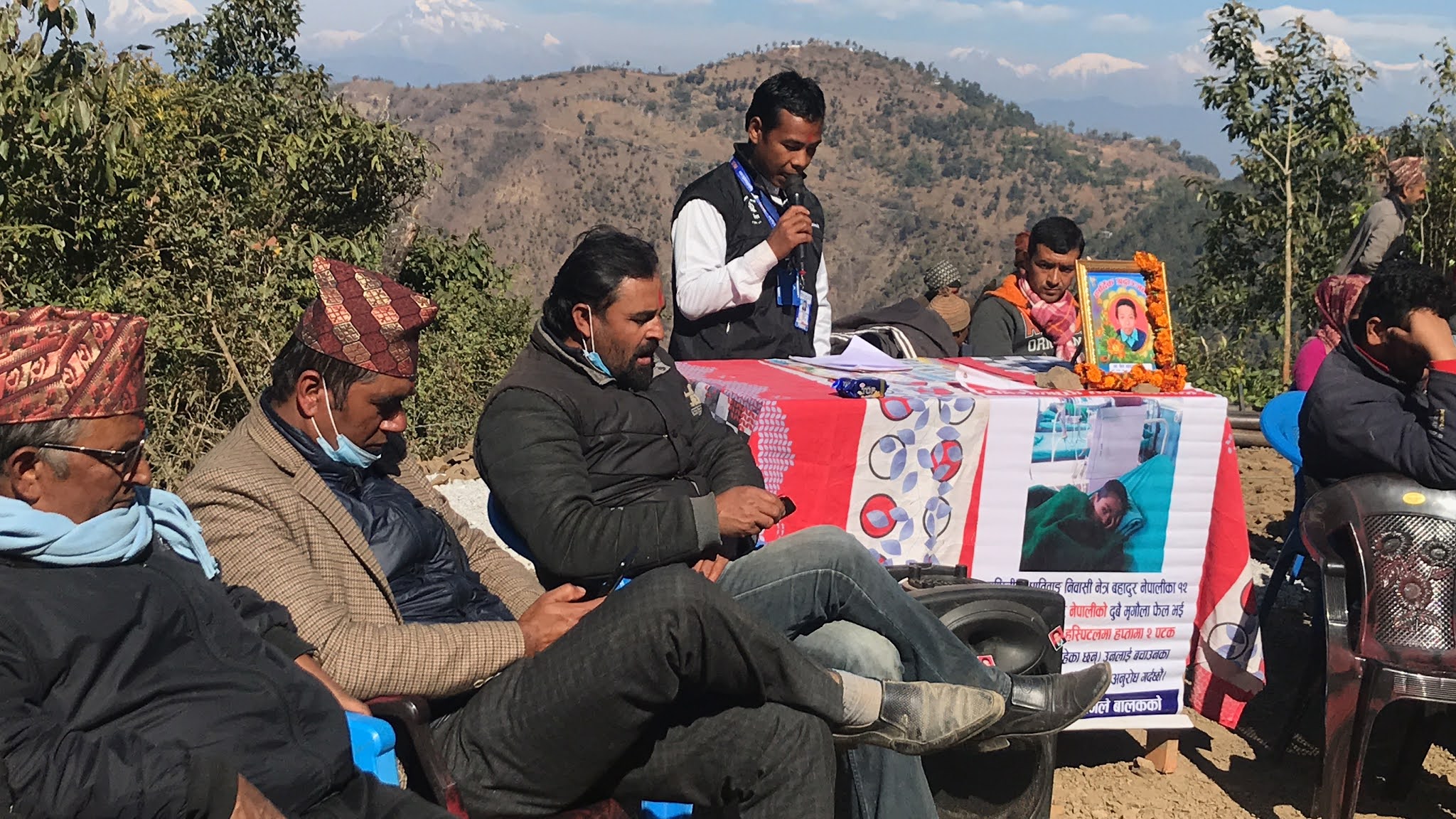 औपचारिक कार्यक्रममा स्वागत मन्तव्य नेत्र बहादुर नेपालीले गर्नुहुदै छोरालाई विभिन्न ठाउँबाट सहयोग हुँदाहुँदै पनि छोरालाई बचाउन सकिएन तर पनि छोराको नाममा उपचारको लागि भनेर सहयोग भई वची आएको चार हजार मात्र रहेको वताउदै केही पैसा अझै संकलन गरेर भएपनि एउटा स्वर्गीय छोराको नाममा प्रतीक्षालय बनाउने सोच बनाएको बताउनु भएको छ ।
