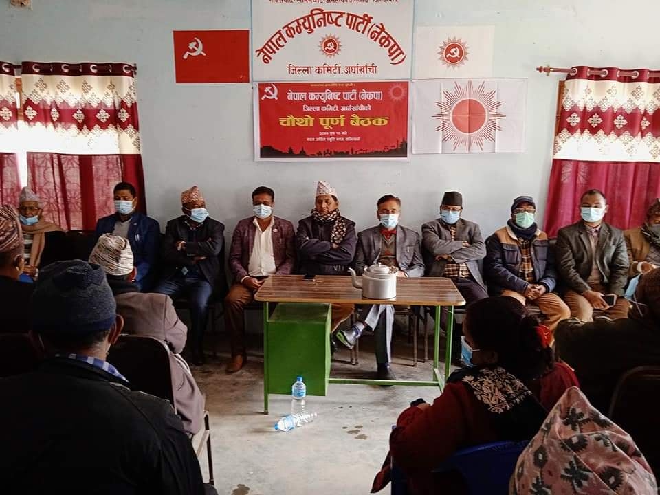 ओली पक्षको नेकपा जिल्ला कमिटी अर्घाखाँचीले चाैथाे पुर्ण बैठक मदन आश्रित स्मृति भबन पार्टी कार्यालयमा आयोजना गरेको  छ ।