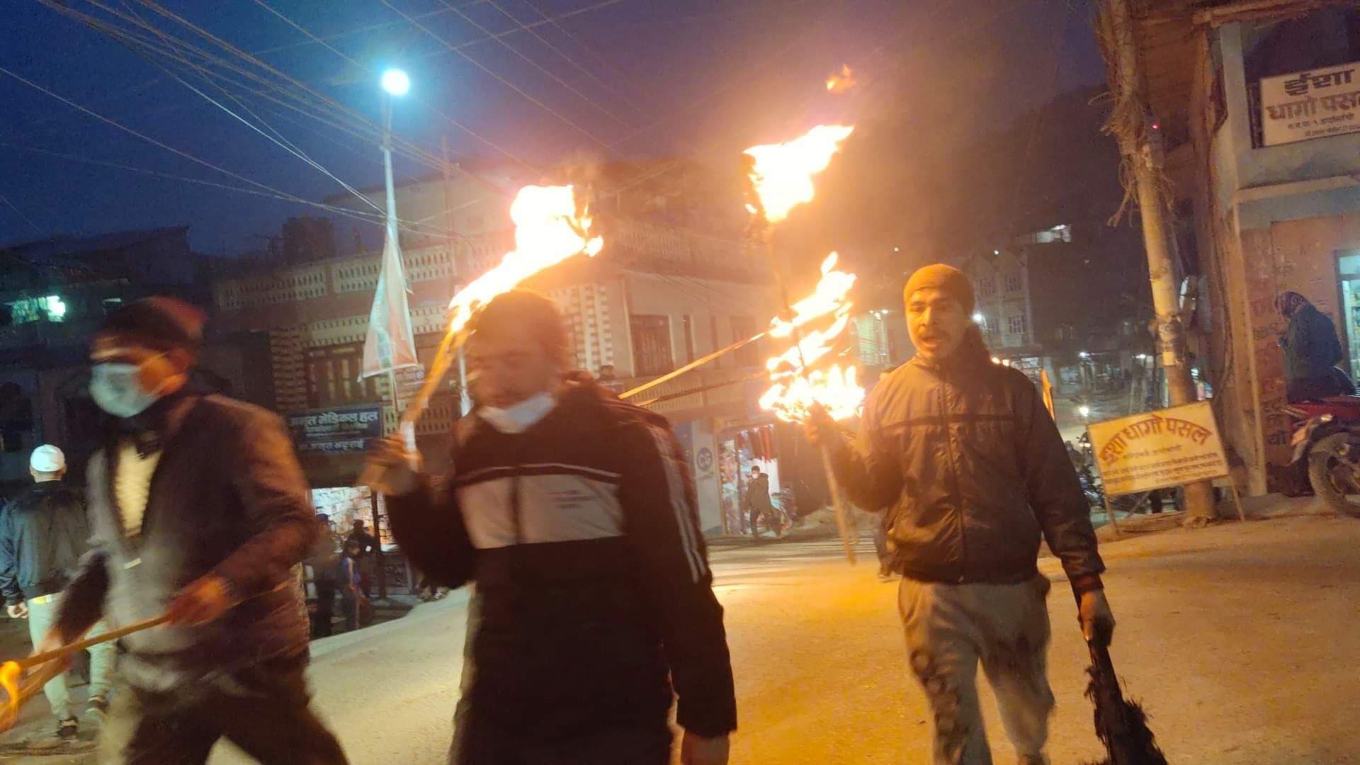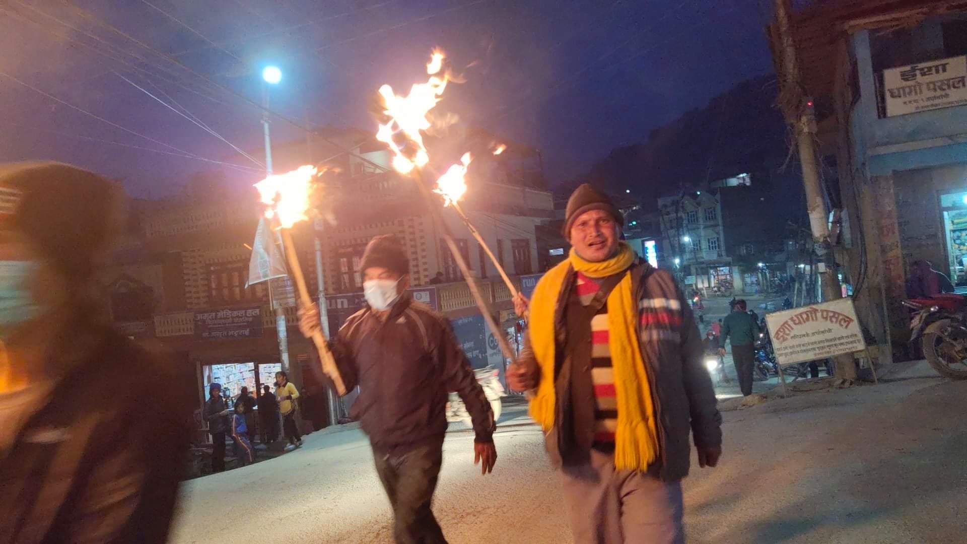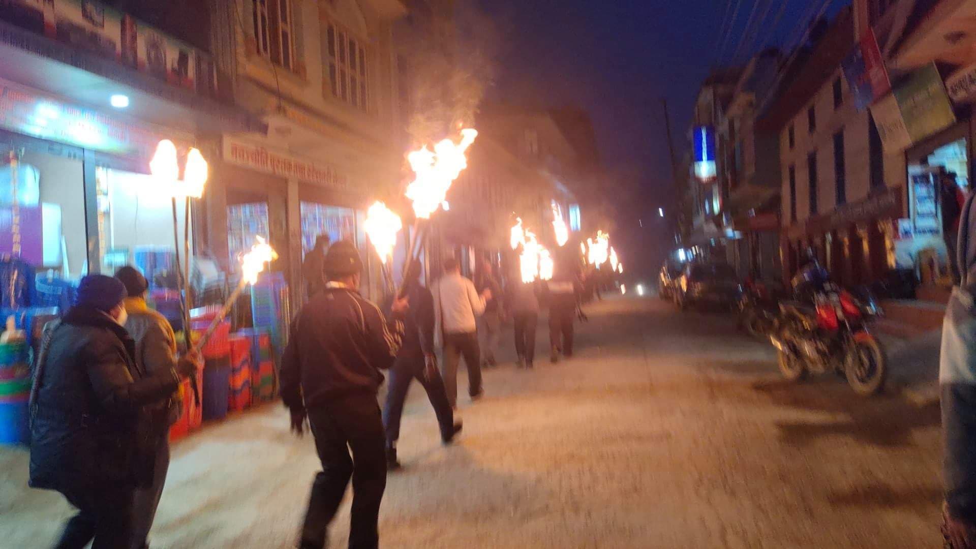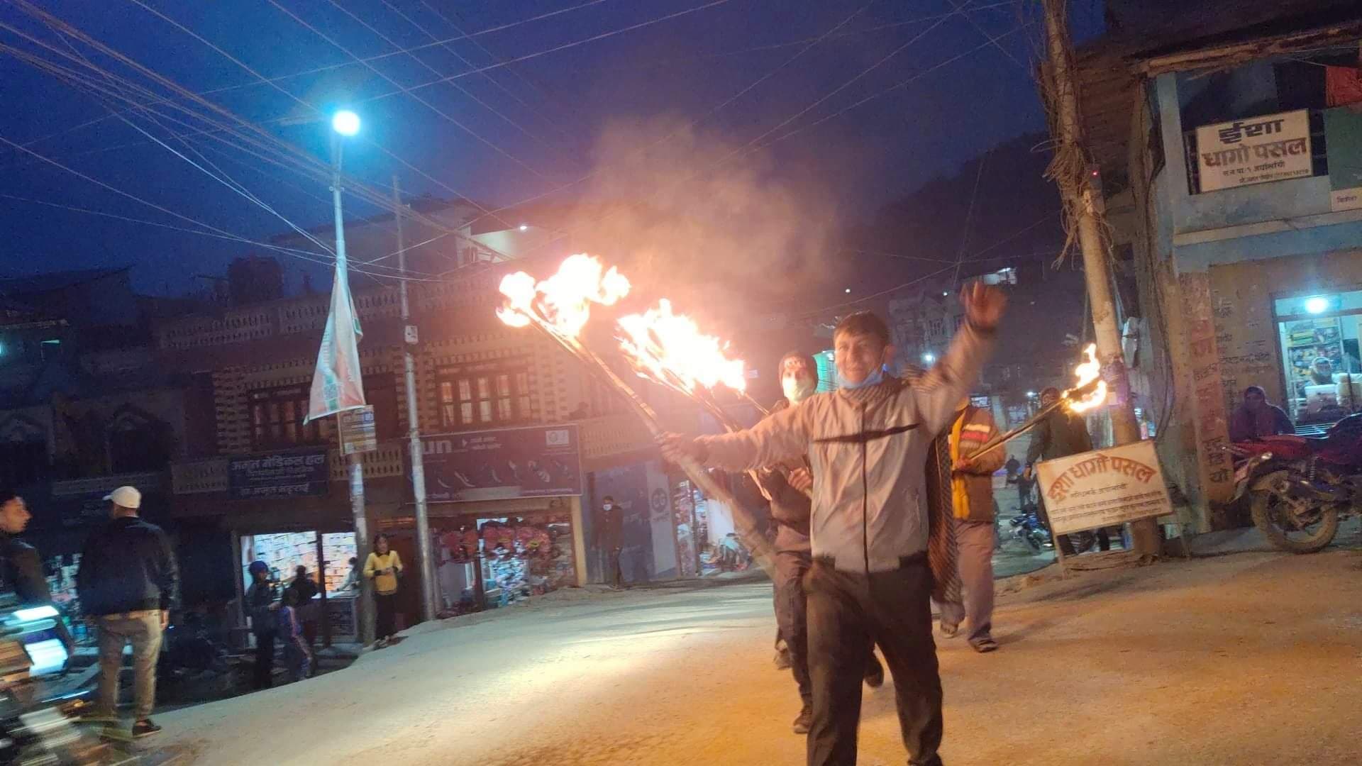 बर्तमान सरकारका कार्य असंबैधानिक भएका भन्दै संसद पुनर्स्थापना गर्नुपर्ने ,भ्रस्टाचार नियन्त्रण हुनुपर्ने , जताततै बिकृती र बिसङती को निर्मुल हुनुपर्ने माग राख्दै रास्ट्रिय जनमोर्चा जिल्ला समिती अर्घाखाँचीको आयोजनामा निकालिएको मसाल जुलुश सन्धिखर्क र चुत्राबेशिका विभिन्न स्थान बाट निस्किएर बजार परिक्रमा गरि शान्ती बगैंचामा पुगेर कोणसभामा परिणत भएको हो ।