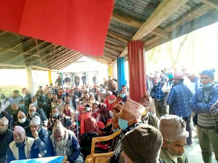 कार्यक्रमा नेपाल कम्युष्टि पार्टी महाधिवेशन आयोजक कमिटी केन्द्रीय सदस्य चेतनारायण आचार्यले निर्वाचनको समयमा भएको एकताका दिनबाटै गुटबन्दी सुरु भएको बताउँदै नेकपा ओली नेतृत्वको पार्टीमा लाग्न आग्रह गर्नुभयो । उहाँले विघटित संसद पुनःस्थापना हुन नसक्ने बताउँदै गाउँगाउँमा गएर ओली नेतृत्वको नेकपाको पक्षमा संगठित बनाउँन कार्यकर्तालाई आग्रह गर्नुभयो ।