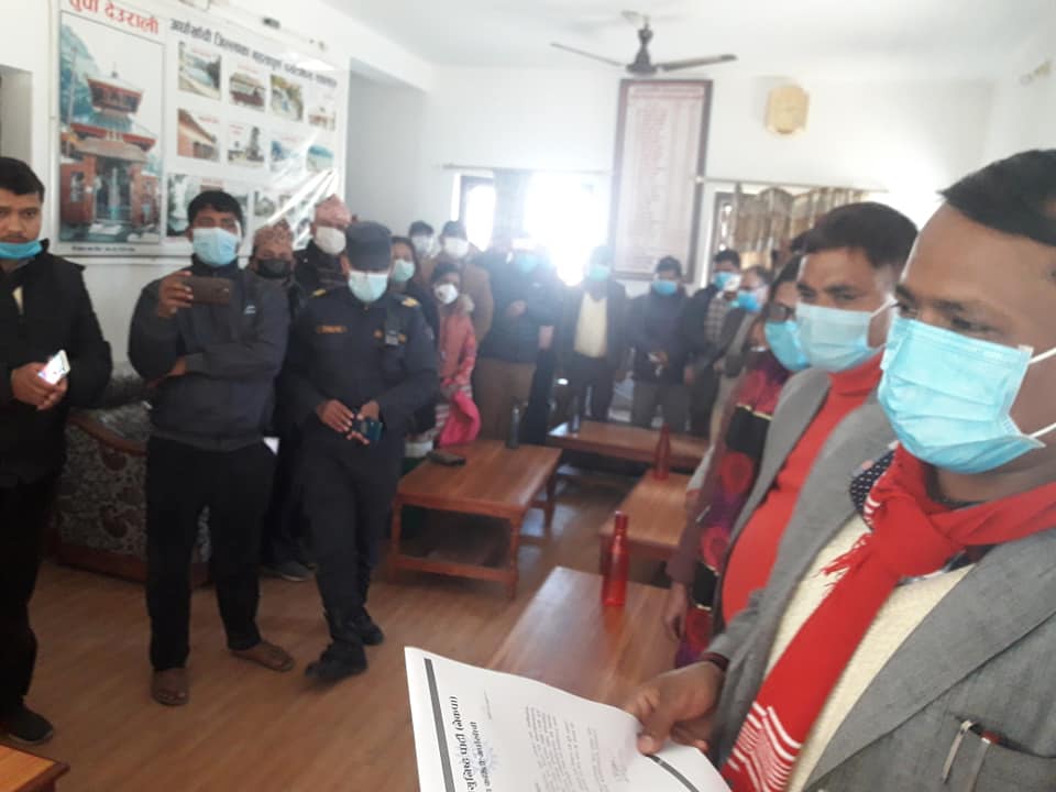 नेकपा कि केन्द्रिय सदस्य शुशिला श्रीपाली ठकुरी को नेतृत्व मा नेकपा का कार्यकर्ता सहित  गएको टोलि ले प्रमुख जिल्ला अधिकारी लाई बिरोध पत्र बुझाएको छ भने बिरोध पत्र बुझे लगत्तै प्रमुख जिल्ला अधिकारी बिष्णु पौडेल ले आफू ले यो बिरोध पत्र अहिले नै नेपाल सरकार सम्माननिय प्रधानमन्त्री को कार्यलय  सिंहदरबार काठमाडौं मा पठाउने प्रतिबद्धता ब्याक्त गर्नु भएको थियो ।