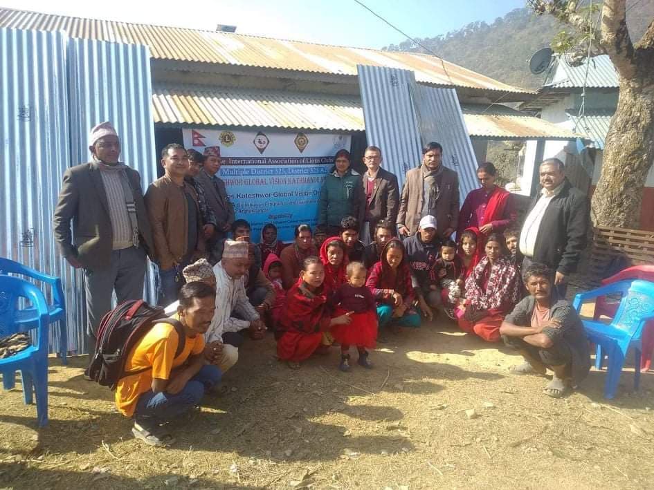 लायन्स क्ल्ब इन्टरनेसनल ३२५ ए २ अन्तर्गत लायन्स क्ल्ब अफ कोटेश्वर ग्लोबल भिजनले शनिबार पिडितहरुका लागि राहत स्वरुप चार लाख पचास हजार बराबरको  ४५ बन्डल जस्तापाता हस्ताण्तरण गरेको हो । लायन्स क्लब्स इन्टरनेसनल ३२५ ए टु अन्तर्गत कोटेश्वर ग्लोबल भिजनले आयोजना गरेको उक्त कार्यक्रमलाई डिस्ट्रइक गभर्नर डा. शुशिला मल्ल लगायतका क्याबिनेट सदस्यहरु र पूर्ब पदाधिकारीहरुको समेत विशेष सहयोग रहेको थियो।