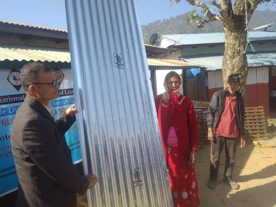 ठाडा, अर्घाखाँची । सेवानै धर्म हो भन्ने मनसायले स्थापित लायन्स क्लब अफ कोटेश्वर ग्लोबल भिजनले अर्घाखाँची जिल्लाको शितगंगा नगरपालिका वार्ड नम्बर  १२ स्थित कोठिया मैदान र ११ सिद्धारा स्थित ढुङगेशेरामा गएको पहिरोबाट बिस्थापितलाई  जस्तापाता हस्तान्तरण गरेको छ ।