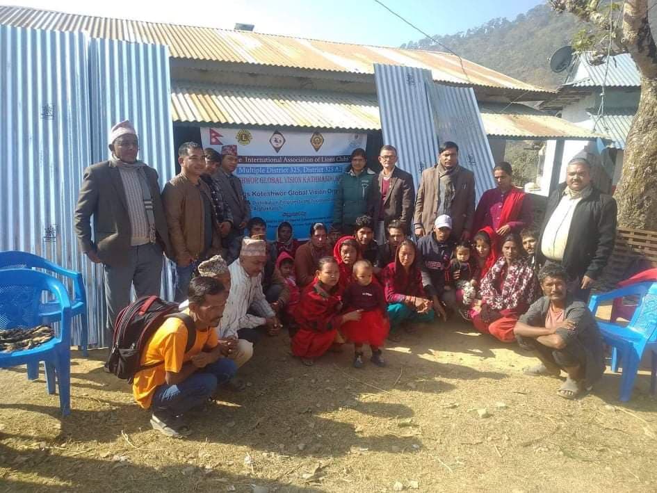 लायन्स क्ल्ब इन्टरनेसनल ३२५ ए २ अन्तर्गत लायन्स क्ल्ब अफ कोटेश्वर ग्लोबल भिजनले शनिबार पिडितहरुका लागि राहत स्वरुप चार लाख पचास हजार बराबरको  ४५ बन्डल जस्तापाता हस्ताण्तरण गरेको हो । लायन्स क्लब्स इन्टरनेसनल ३२५ ए टु अन्तर्गत कोटेश्वर ग्लोबल भिजनले आयोजना गरेको उक्त कार्यक्रमलाई डिस्ट्रइक गभर्नर डा. शुशिला मल्ल लगायतका क्याबिनेट सदस्यहरु र पूर्ब पदाधिकारीहरुको समेत विशेष सहयोग रहेको थियो।