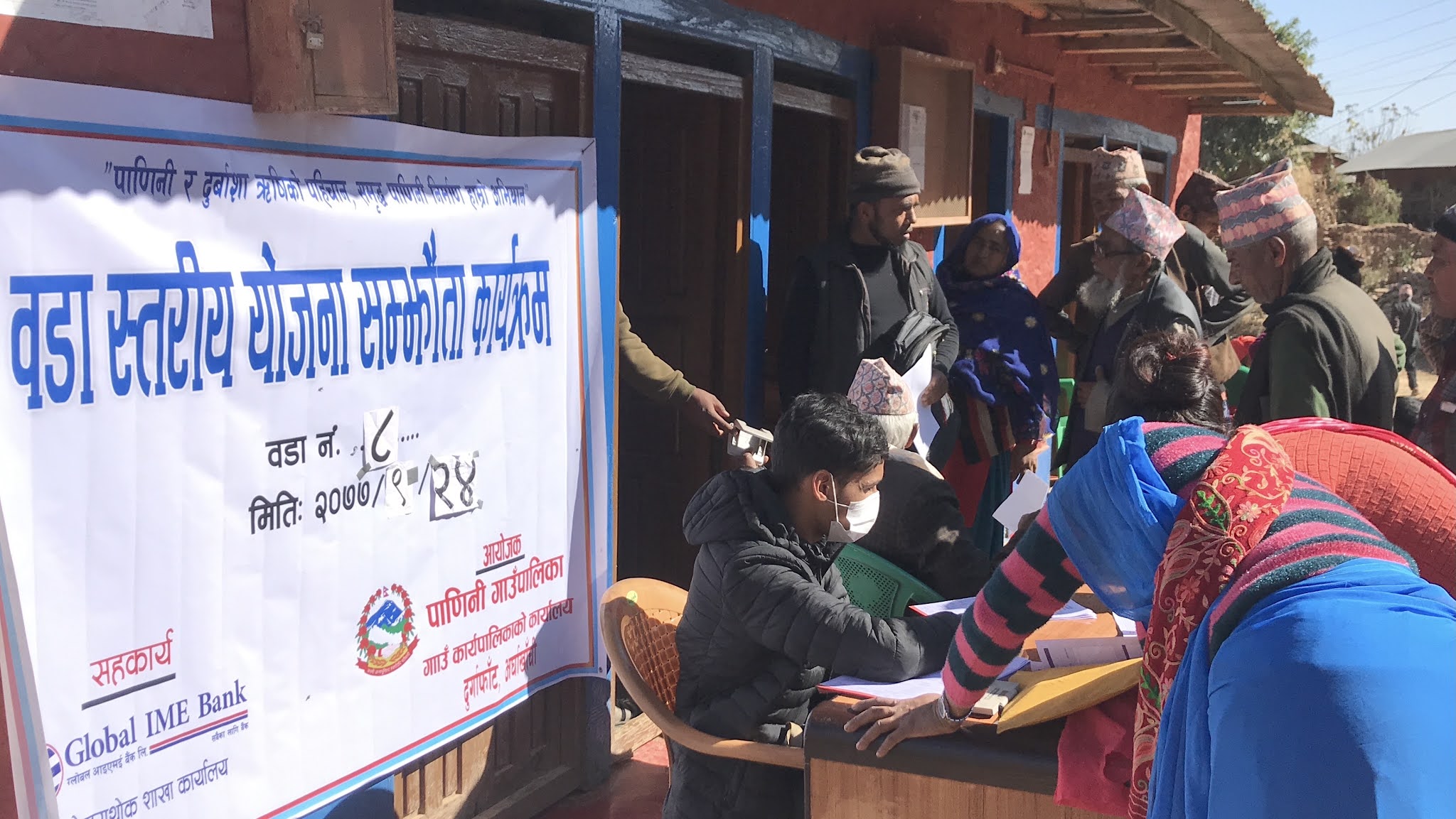 ग्लोबल आईएमआई वैक पोखराथोकका कर्मचारी वडामै पुगेर योजनाको खाता खोली नागरिकलाई सहजता गराउने उद्देश्यले खाता खोल्ने कामसमेत गरिएको थियो । – तस्वीर शालिकराम गौतम/अर्घाखाँची डटकम् ।