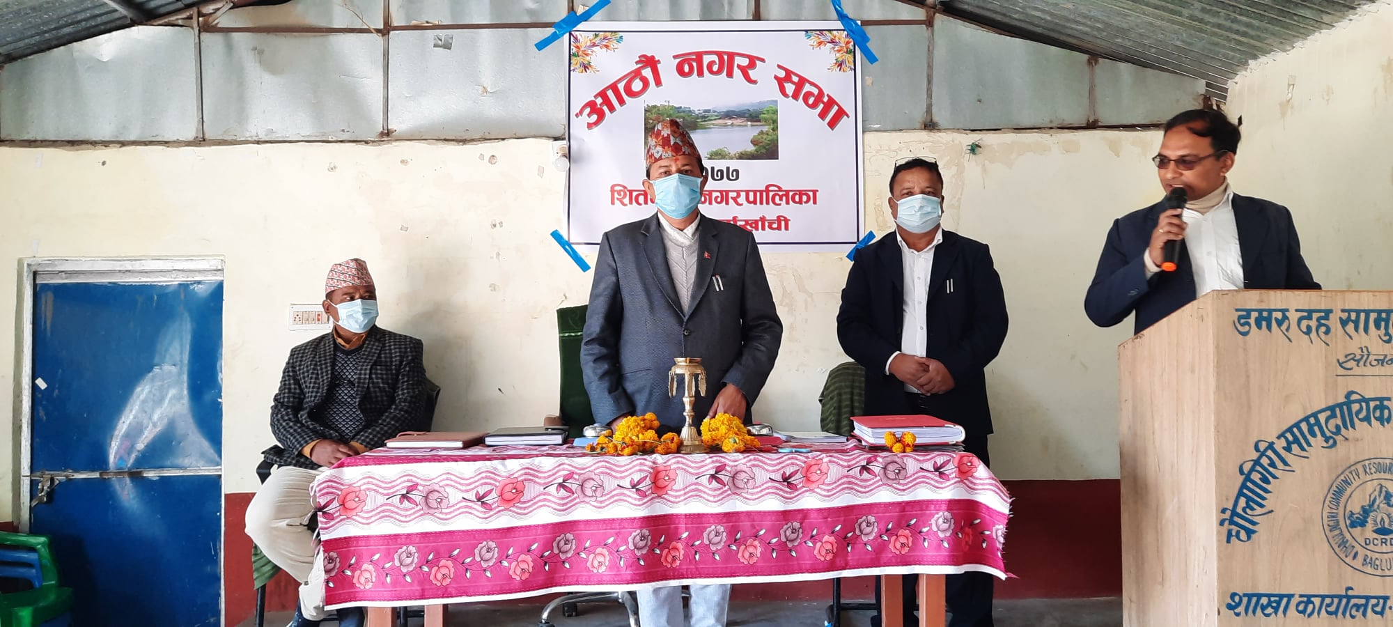 शितगंगा नगरपालिकाको आठौ नगरसभाको उदघाटन नगरप्रमुख सूर्यप्रसाद अधिकारीले गर्नु भएको थियो ।