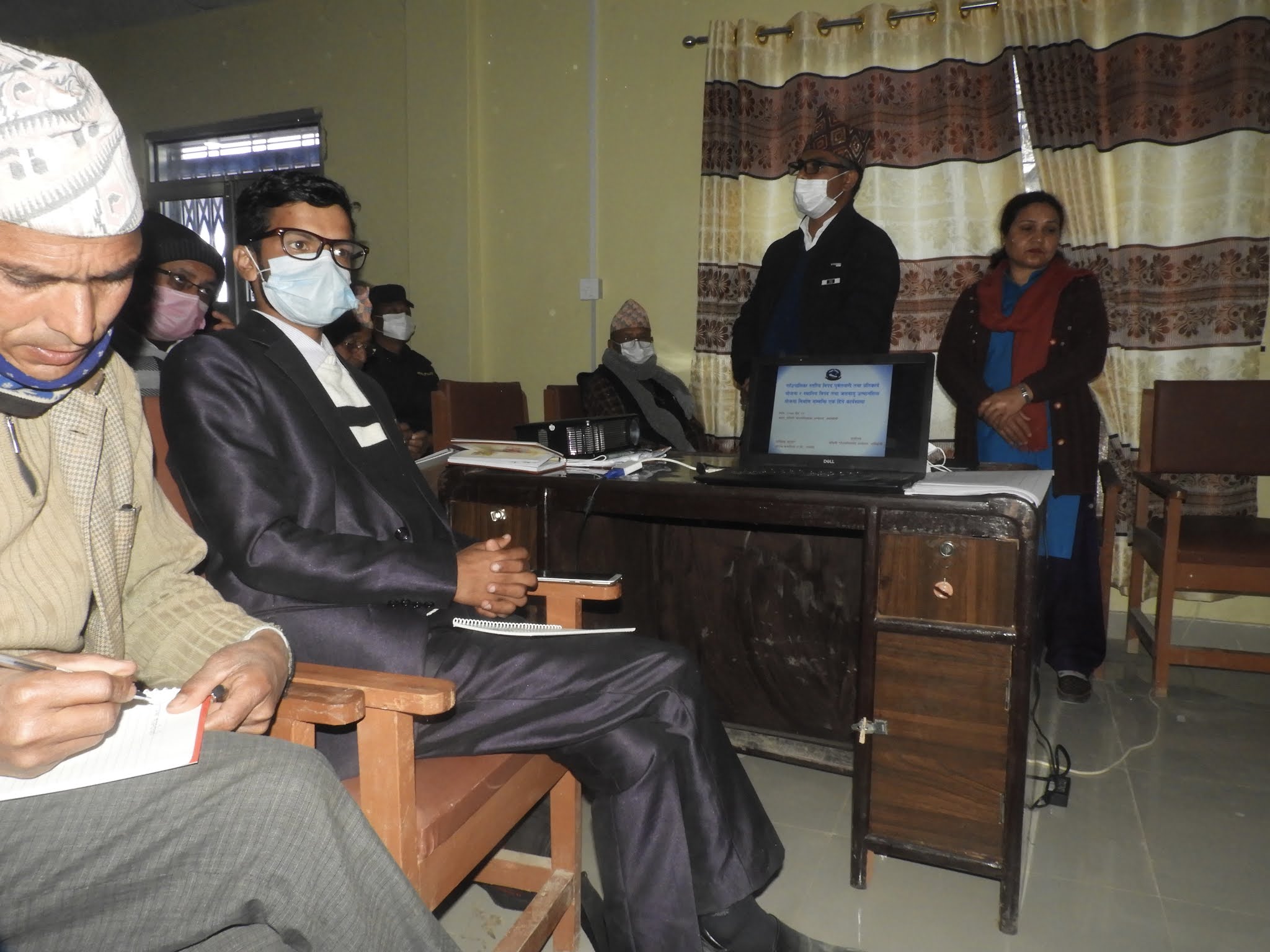 नेपाल सरकार गृह मन्त्रालय को “विपद पुर्वतयारी तथा प्रतिकार्य योजना निर्माणनिर्देशिका २०७६” र संघीय मामिला तथा सामान्य प्रशासन मन्त्रालय को“स्थानीय विपद तथा जलवायु उत्थानसील योजना निर्माण निर्देशिका २०७४”वमोजिम स्थानीय विपद व्यावस्थापन समिती तथा विषयगत समिती तथाविभिन्न शाखा का प्रतिनिधि हरु सँग विपद जोखिम सम्बन्धि एक दिनेअन्तरक्रिया तथा विपद व्यावस्थापन योजना को लागी तथ्यांक संकलन गर्नेकाम सम्पन्न भएको छ ।