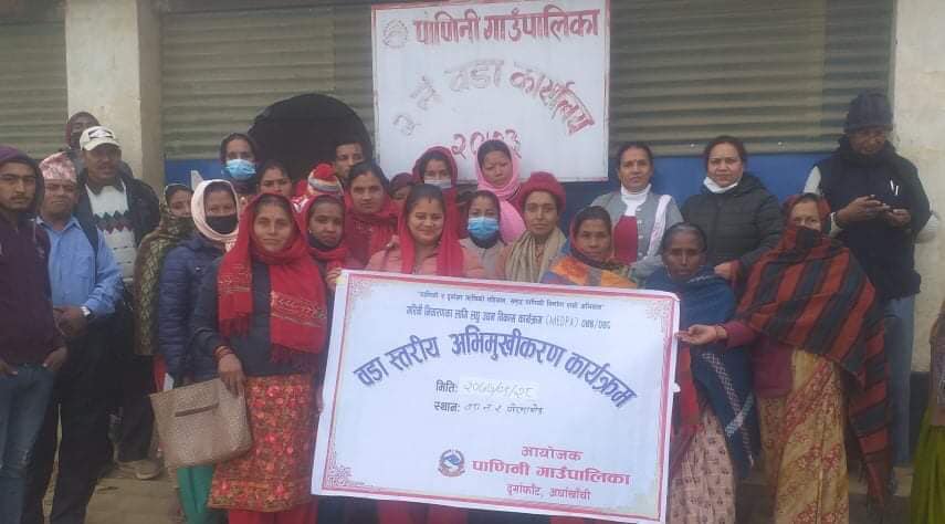 पाणिनी गाउँपालिकामा आ.व. २०७७/०७८ मा संचालन हुने गरिबी निवारणका लागि लघु उद्मम विकास कार्यक्रम अन्तर्गत वार्ड नं. २ पाेखराथाेक र वार्ड नं .३ खिदिममा वार्ड स्तरीय अभिमुखिकरण कार्यक्रम सम्पन्न भएको हो ।