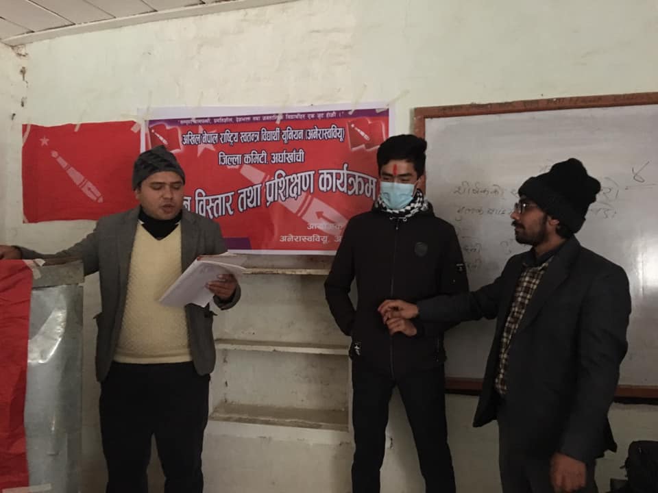कार्यक्रमको प्रमुख अथिति अनेरास्ववियू अर्घाखाँची जिल्ला संयाेजक लक्ष्मण खड्काले बिद्यार्थी आन्दोलनले हरेक कालखण्डमा महत्वपूर्ण भूमिका खेलेको हुनाले यस पालि पनि सरकारले ससद विगठन लाइ पुर्नस्थापना गर्नको लागि आन्दोलन गर्नुको विकल्प नभएकाे बताउनु भएकाे छ ।