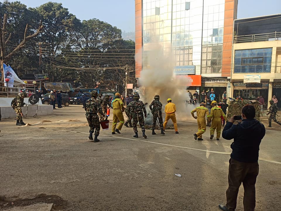 यता सशस्त्र प्रहरिबल अर्घाखाँचीले ग्यास तथा पेट्रोलबाट बाट हुन सक्ने आगजनिबाट बच्ने उपाय सम्बन्धी डेमो प्रदर्शन गरेको थियो । बिपदका बेला कम्बल तथा कमिज , पाइन्ट बाट पनि स्टेचर बनाइ बिरामी तथा प्रकोप पिडितलाइ समयमै उद्धार गर्ने कला पनि सशस्त्र प्रहरिले प्रदर्शन गरेको थियो ।
