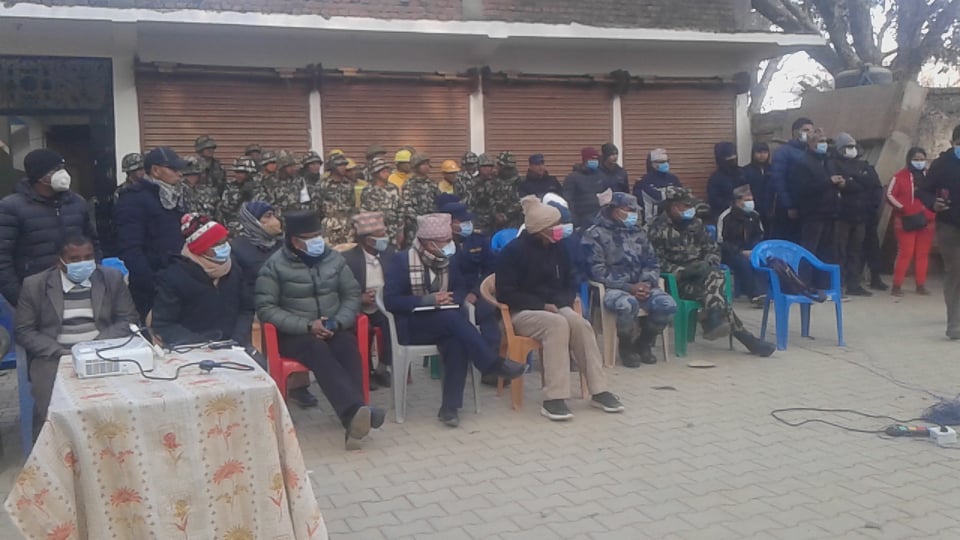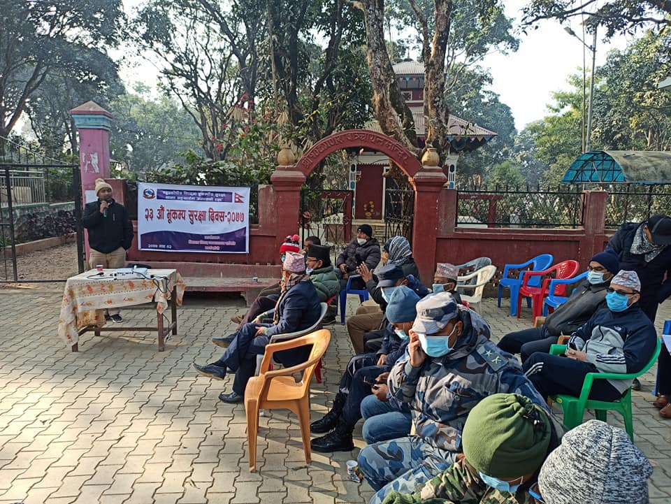 जिल्ला स्तरिय बिपद ब्यबस्थापन समितिका प्रमुख प्र. जि. अ . बिष्णु पौडेलको अध्यक्षतामा भएको उक्त कार्यक्रममा प्रदेश शभा सदस्य रामजी प्रसाद घिमिरेको प्रमुख आथित्यता रहेको थियो । कार्यक्रममा जिल्ला रेडक्रस लगायत विभिन्न क्षेत्रका महानुभाबहरुको उपस्थिती थियो । कार्यक्रमको सन्चालन सहायक प्र . जि . अ . बिनोद खनालले गर्नुभएको थियो । कार्यक्रममा मन्तब्य राखदै बक्ताहरुले दैबी प्रकोप जानकारी दिएर नआउने भन्दै सधै सचेत रहनुपर्नेमा जोड दिए ।