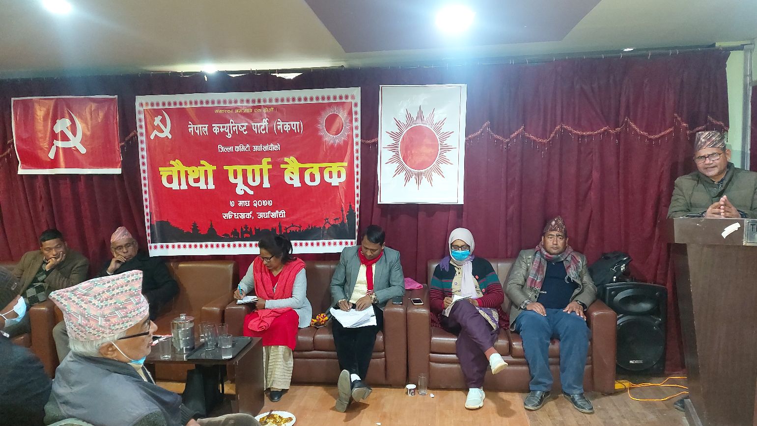 सन्धिखर्कको एभेष्ट होटेलमा प्रचण्ड-नेपाल पक्ष नेपाल कम्युनिष्ट पार्टी (नेकपा) को पार्टी जिल्ला कमिटीको चौथो पूर्ण बैठक बुधवार सम्पन्न भएको हो ।