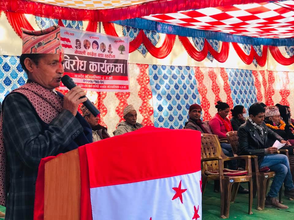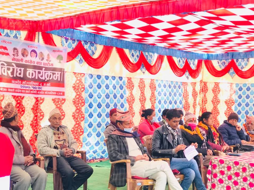 छत्रदेब गाउँपालिकाका सबै ९ वटा वार्डमा नेपाली काँग्रेसले सरकारविरुद्ध विरोध प्रदर्शन सम्पन्न गरेको हो ।