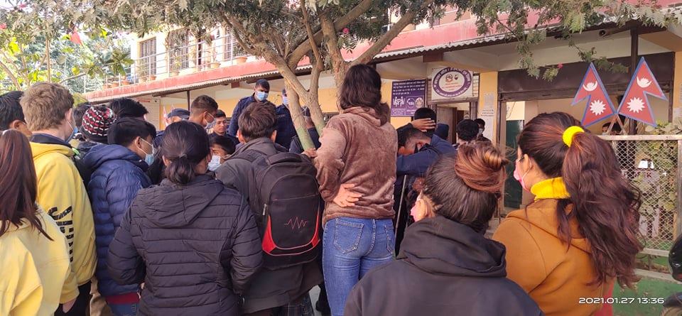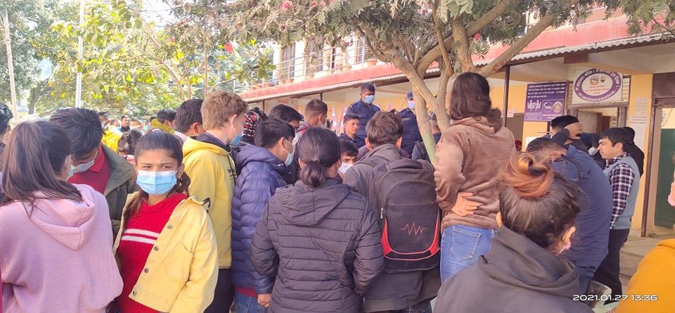 सन्धिखर्कमा भेटनरी र कृषि जेटिएको परिक्षा आज माघ १४ गते ११ बजेलाई तोकिए पनि अहिलेसम्म नभएको भन्दै आवेदकहरु नाराबाजी गरी सन्धिखर्क नगरपालिका घेराउ गरेका हुन् ।