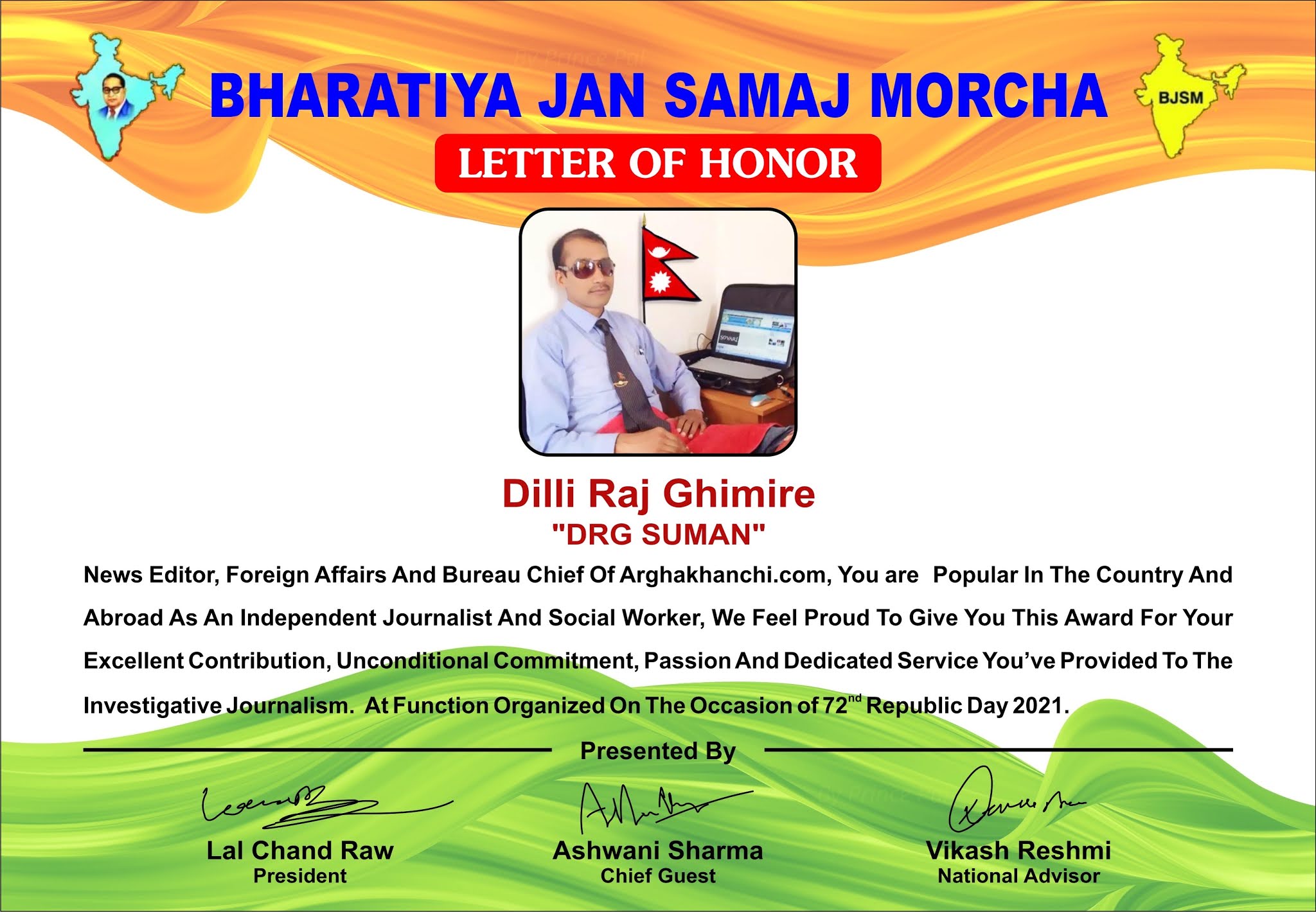 स्वतन्त्र पत्रकार डिआरजी सुमन ले भारत यात्रा अवधिमा केही औपचारिक त केही अनौपचारिक गरी ५० भन्दा धेरै कार्यक्रम सहभागिता जनाएका छन । भारतीय भूमिमा नेपालीका सफलता र समस्या लाई नजिकै वाट नियाल्ने खरो पत्रकारिता गरेका कारण पनि सुमनको भारतमा राम्रो छाप रहेको देखिन्छ । डिआरजी सुमन जनवरी २९ तारीख़ शुक्रवार सम्म नेपाल पुग्ने डिआरजी सुमन फ़ैन्स कल्वको संरक्षक दीपक भूसालले अर्घाखाँची डटकम् लाई जानकारी गराउनु भएको छ ।