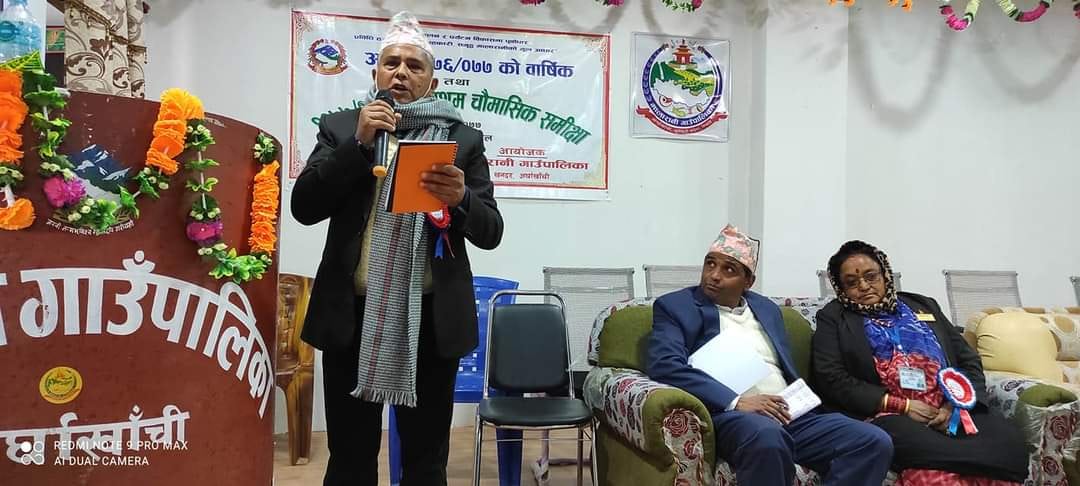 प्रमुख प्रशासकिय अधिकृत बिष्णु घर्ती “भनभनेली”ले आर्थिक वर्ष २०७७÷०७८ को पहिलो चौमासिकमा सम्पन्न भएका र सञ्चालन भईरहेका योजना, बजेट, कार्य प्रगतिविवरण प्रस्तुत गर्नुभएको थियो । साथै उहाँले कविता मार्फत समिक्षा गोष्ठी कार्यक्रममा सहभागिहरुलाई कृषि, फलफुल तथा पशुपालन क्षेत्रमा लाग्न आग्रह गर्नुभयो । “सुन्तला” शिर्षकमा प्रस्तुत गर्नुभएको कविताले सहभागिहरुको मन छोएको थियो ।