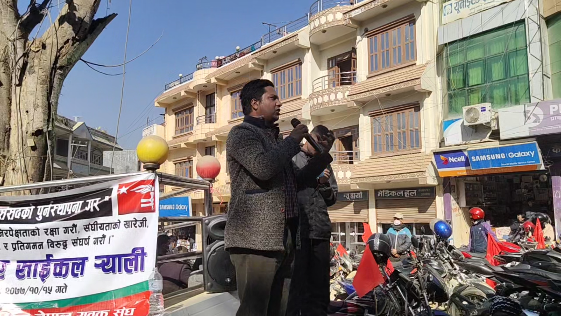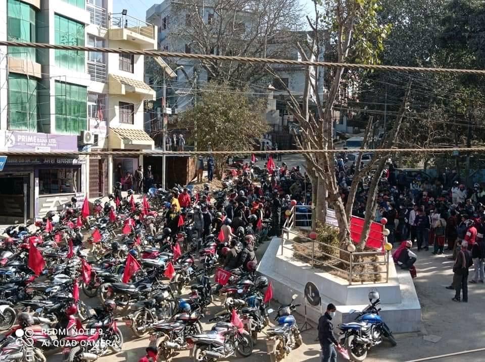 मसाल बजार बाट निस्किएको मोटरसाइकल र्याली चुत्राबेसि , सन्धिखर्क ,तारामार्ग , हटारिनेटा , टुडिखेललाइन , पाणिनी चोक , हललाइन हुँदै बगैंचामा   आएर कोणसभामा परिणत भएको थियो ।