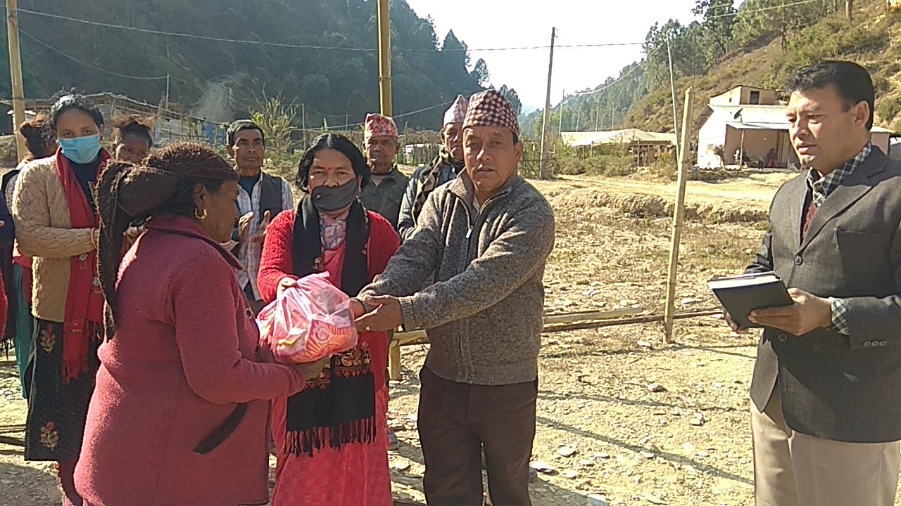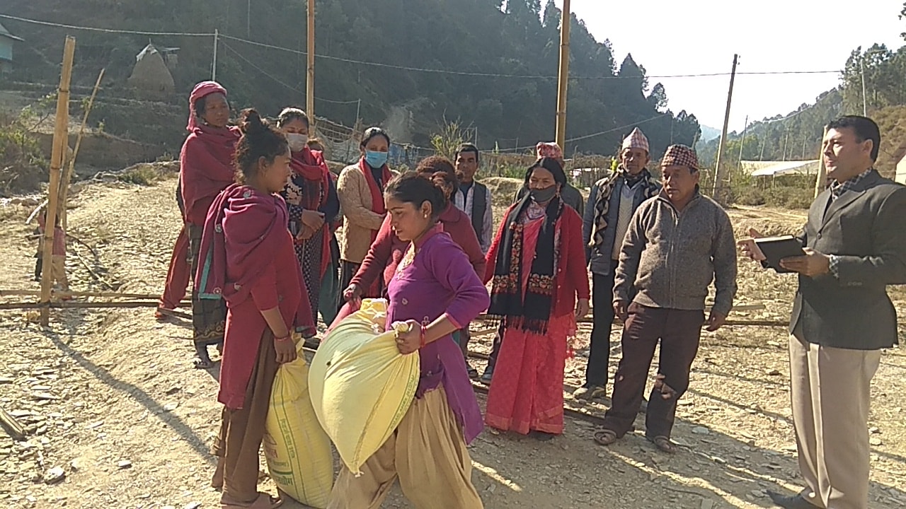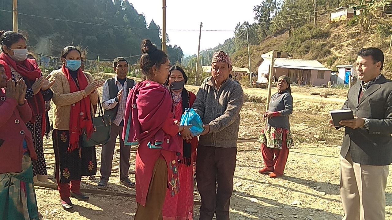 भद्रीखोला निवासी प्रकाश परीयार र गाडी दुर्घटनामा परी अपांग भएका शम्भु बादीलाई आज एक कार्यक्रममा बिच खाद्यसामाग्री बितरण गरीएको हो ।