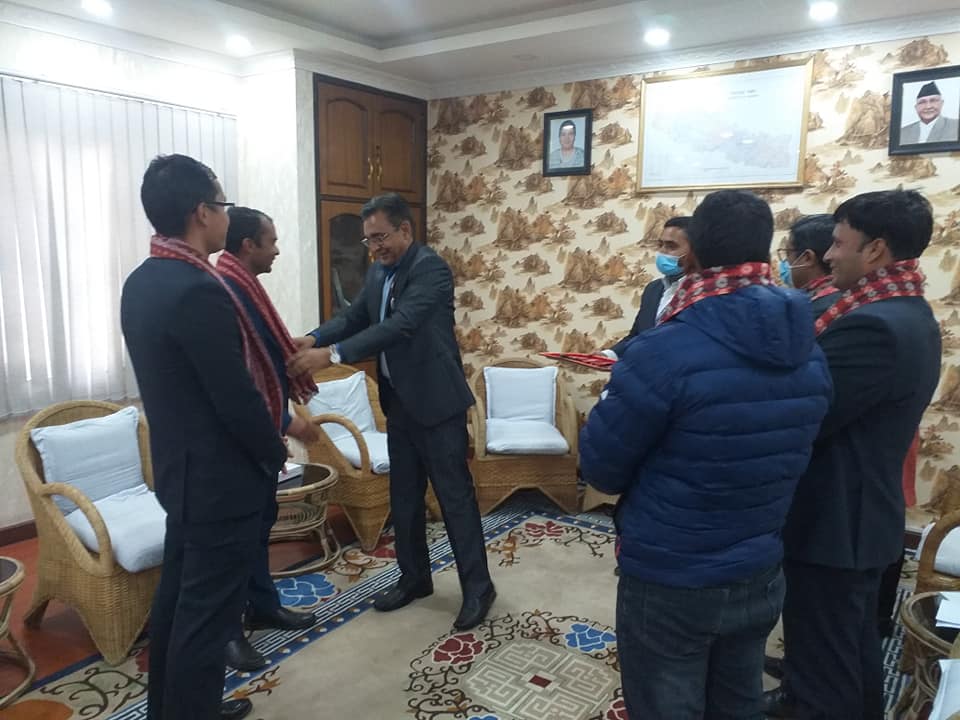 जिल्लाबाट हालसालै उप-सचिवमा सिफारिस भएका राष्ट्रसेवक कर्मचारीहरूलाई काठमाडौं उर्जा,जलश्राेत तथा सिंचाईमन्त्री टाेपबहादुर रायमाझीले मन्त्रालयमा खादा ओडाएर सम्मान गर्नुभएकाे थियो ।