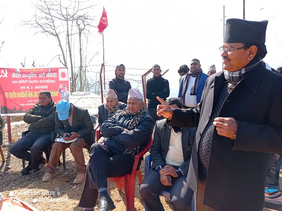 छत्रदेव गाउँपालिका वार्ड नम्वर ३ का अध्यक्ष झविलाल पाण्डेकाे अध्यक्षता, टाेपलाल पाण्डेकाे सञ्चालन र तेजप्रसाद खनालकाे स्वागत मन्तव्यमा सम्पन्न कार्यक्रममा जिल्ला कार्यलय सदस्य पिताम्वर भुसाल,प्रेस सगठन केन्द्रीय सदस्य गणेश खनाल,जिल्ला सचिवालय सदस्य धुव्रकुमार पाण्डे,छत्रदेव गाउँपालिका सचिव भाेजबहादुर रायमाझी,छत्रदेव गाउँपालिका सहइन्चार्ज माधव पन्थी लगाएले मन्तव्य राख्नुभएकाे थियाे ।