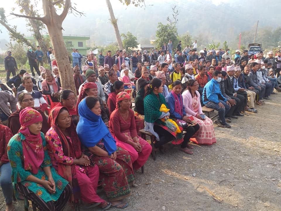 शिलान्यास कार्यक्रममा नगर प्रमुख सुर्य अधिकारी, नगर उपप्रमुख टीका बहादुर रेश्मी, वार्ड अध्यक्ष दामाेदर न्याैपाने, सदस्यहरु चुमा गाहा, मन कला विक, लाल बहादुर पाण्डे, निम बहादुर साेमै मगर लगायतको उपस्थिती रहेको थियो ।