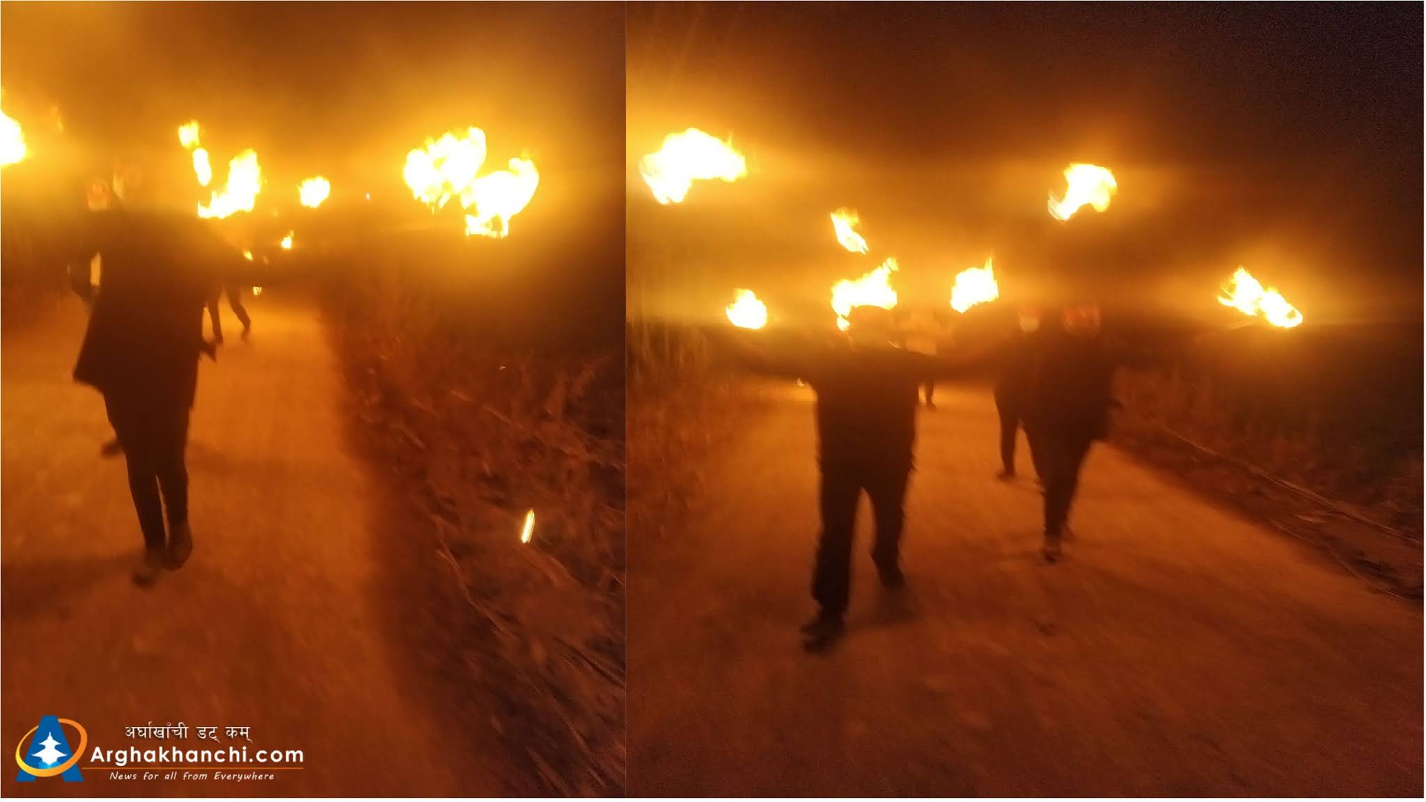 अर्घाखाँचीमा विप्लव नेकपाले २६ औं जनयुद्ध दिवसको पुर्वसन्ध्यामा मशाल जूलूस निकाल्यो