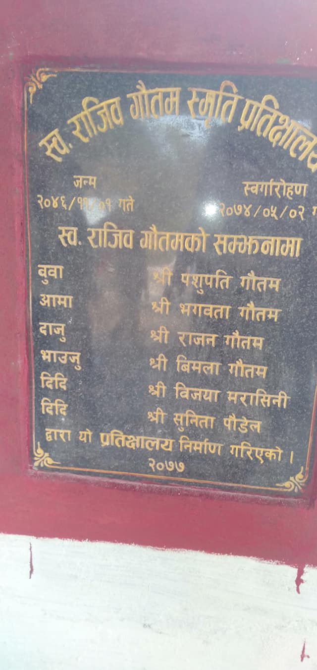 २०७४ भदौ ०२ गते खिदिम ढाब निबासी राजिब गौतमको अल्प आयु मै निधन भएको थियो।