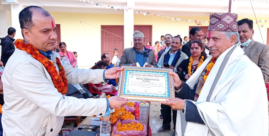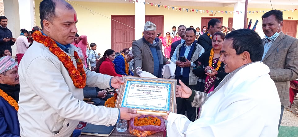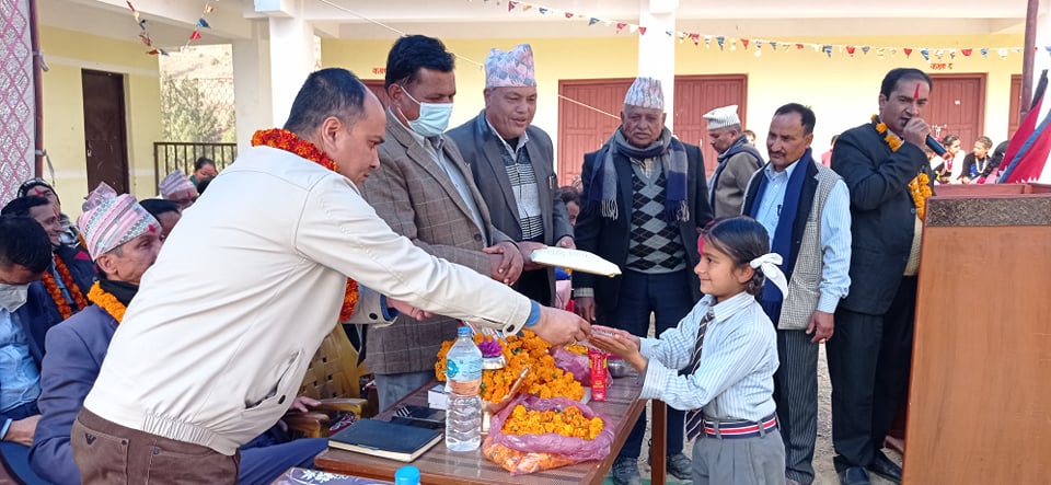 त्यसैगरी विधालयमा लामो समय सेवा गरि अवकाश हुनुभएका र यस विधालयमा लामो समय अध्यापन गराई अन्यत्र विधालयमा सरुवा हुनुभएका शिक्षक-शिक्षिका लाई विधालय का प्रधानध्यापक विष्णु अधिकारी ले टीका,प्रमुख अतिथि खडानन्द बेल्वासे ले दोसल्ला र विधालय व्यवस्थापन समितिका अध्यक्ष उमेश घिमिरेले सम्मान-पत्र दिएर सम्मानित गरिएको थियोे।साथै विधालय का अक्षयकोष दाता हरुलाई पनि दोसल्ला ओडाई सम्मानित गरिएको थियो।