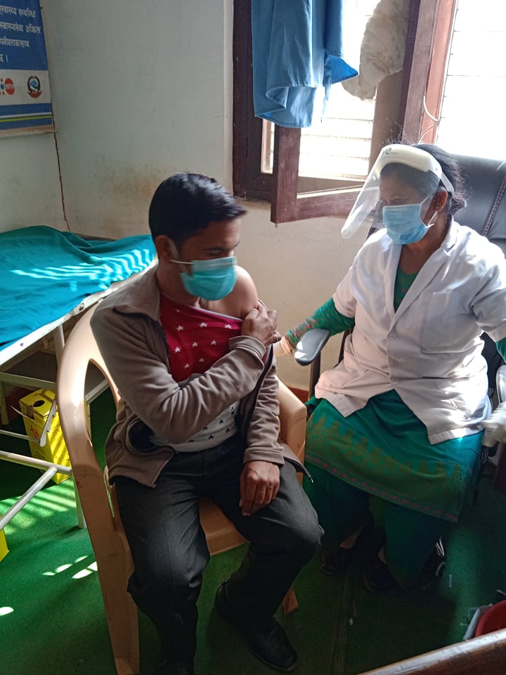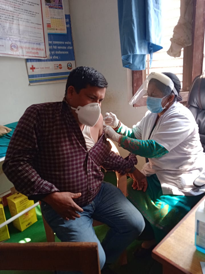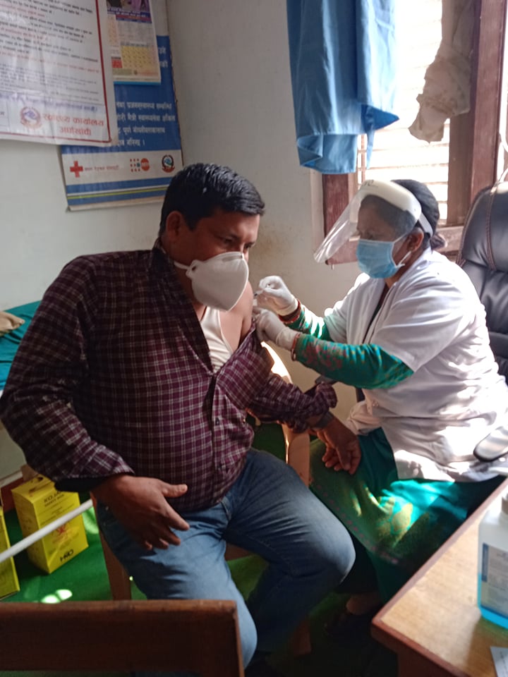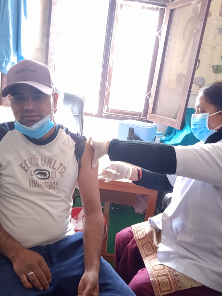 सरकारले कोरोनाविरुद्धको खोप लगाउने प्राथमिकतामा स्थानीय तहका जनप्रतिनिधि र सरकारी कर्मचारी राखे अनुसार जिल्लाका सबै वार्ड, पालिकाका सम्पूर्ण जनप्रतिनिधि, कर्मचारीहरुलाई कोरोनाविरुद्धको खोप लगाउन शुरु गरिएको हो ।