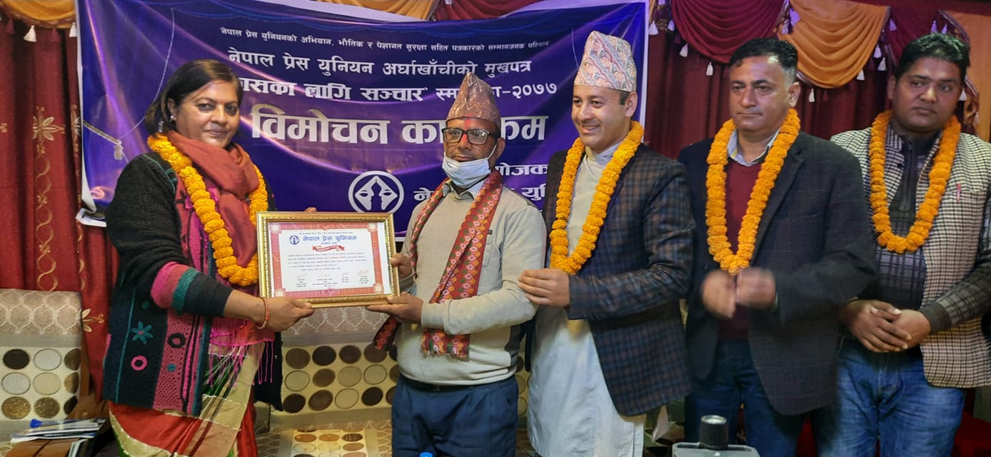 अर्घाखाँचीमा प्रेस युनियनको विकासका लागि सञ्चार स्मारिका विमाेचन कार्यक्रम सम्पन्न, अर्घाखाँचीडट्कमलाई सम्मान (फोटो सहित)