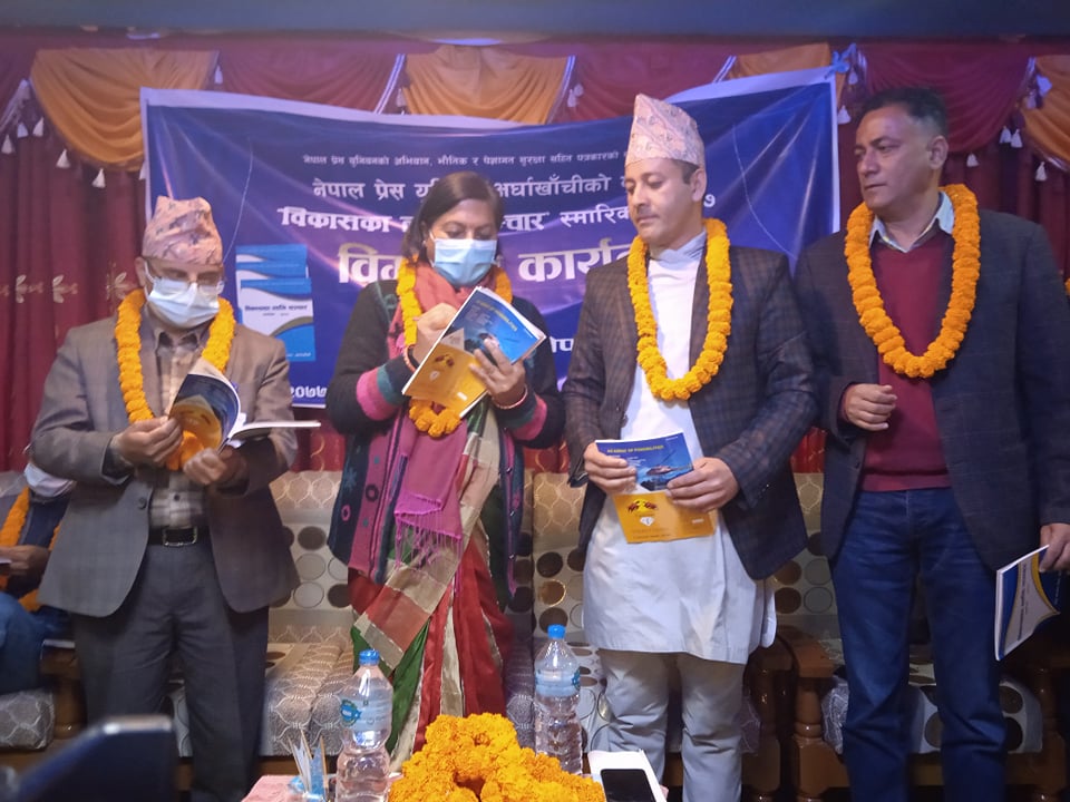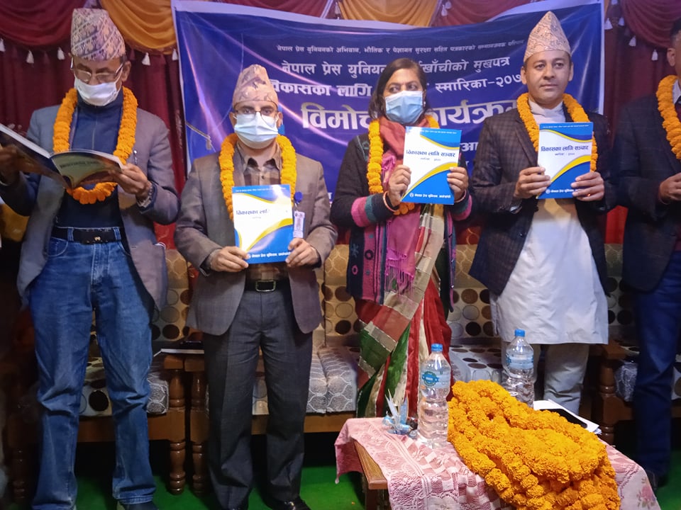 सन्धिखर्क, अर्घाखाँची   (अर्घाखाँचीडट्कम) । अर्घाखाँची जिल्लाको सदरमुकाम सन्धिखर्कमा नेपाल प्रेस युनियन अर्घाखाँची शाखाको मुखपत्र बिकासका लागि सञ्चार स्मारिका २०७७ को एक भब्य समारोहका बिच बिमोचन गरिएको छ ।
