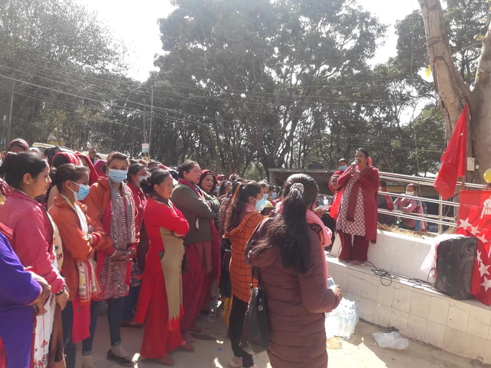 महिला संघले प्रतिनिधि सभा विघटन गर्ने असंबैधानिक कदमका विरुद्ध संघष गरौं । प्रतिगमन , महिला,हिंसा हत्या र बलात्कारका विरुद्ध एक हौं भन्ने मुल नाराका साथ सन्धिखर्कमा बिरोध र्याली निकालेको हो ।